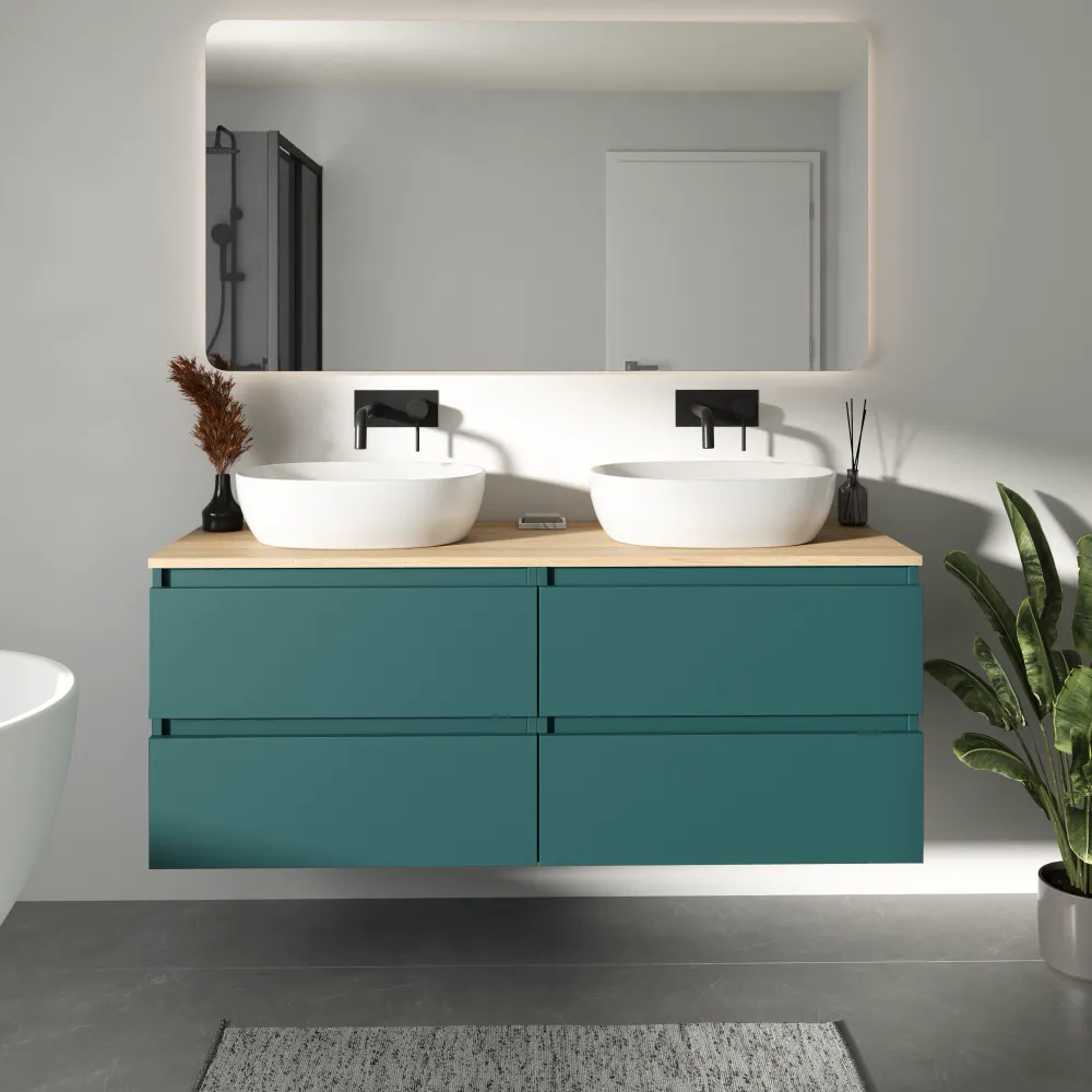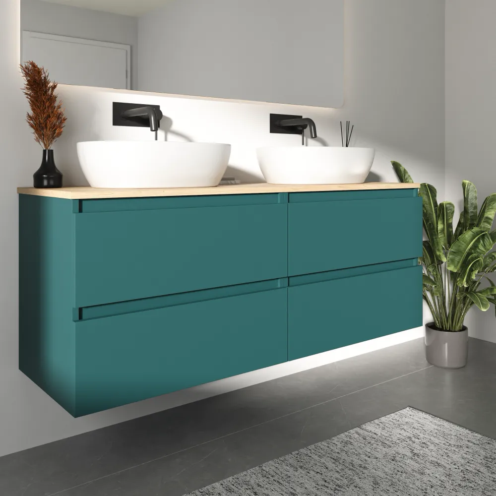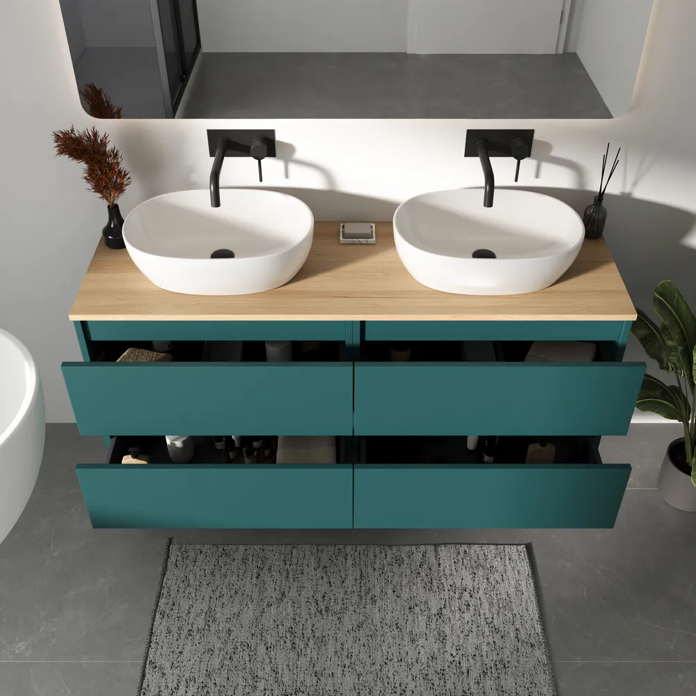 Mobile bagno sospeso 140cm quattro cassetti petrol con top rovere chiaro | Hexa