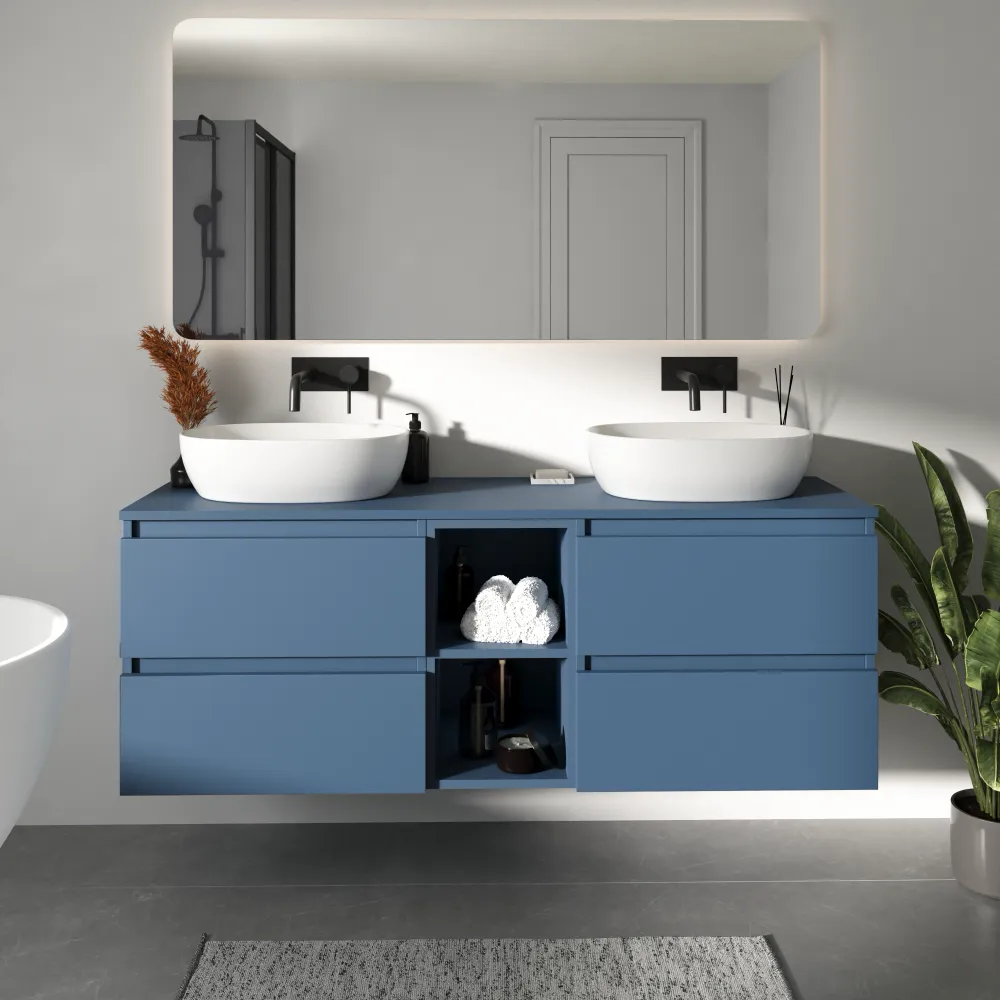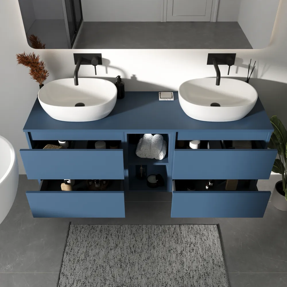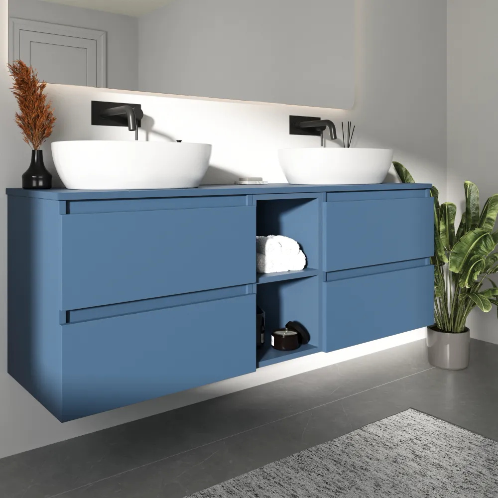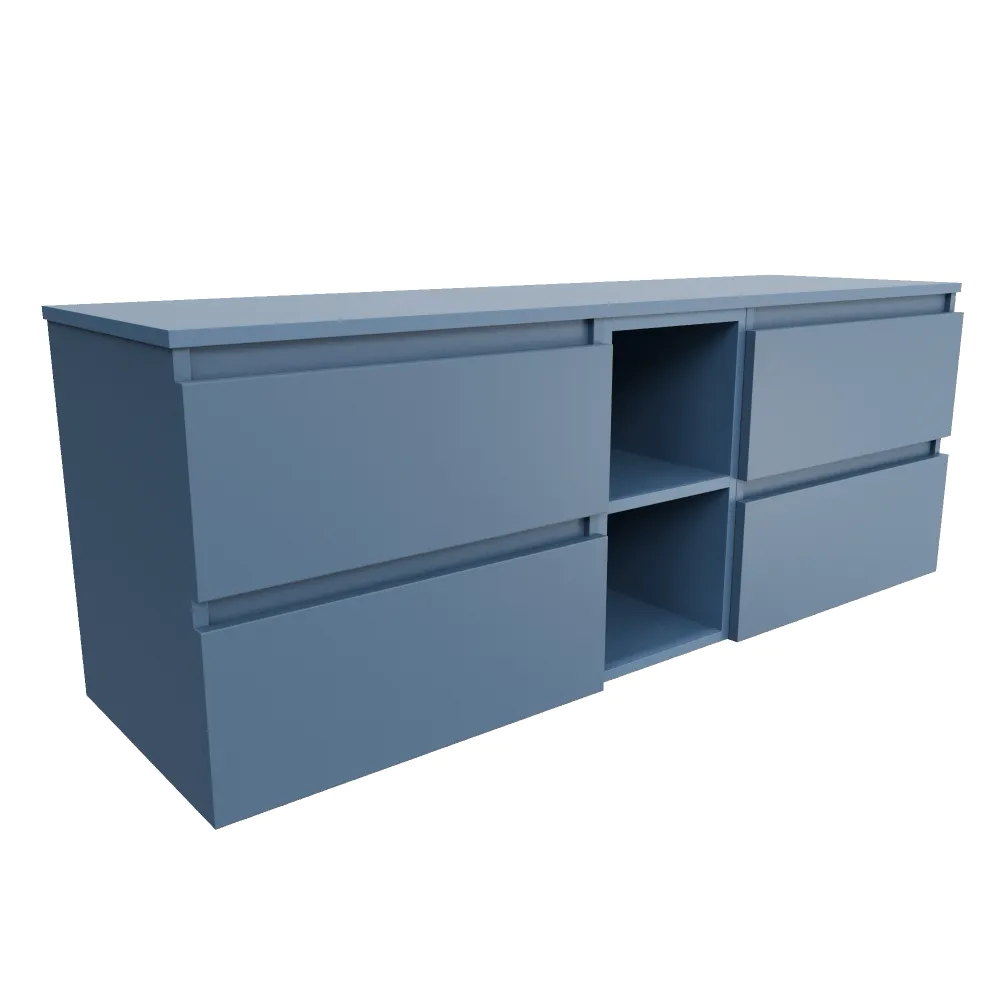 Mobile bagno sospeso 150cm quattro cassetti alby blue con top e vano a giorno | Hexa