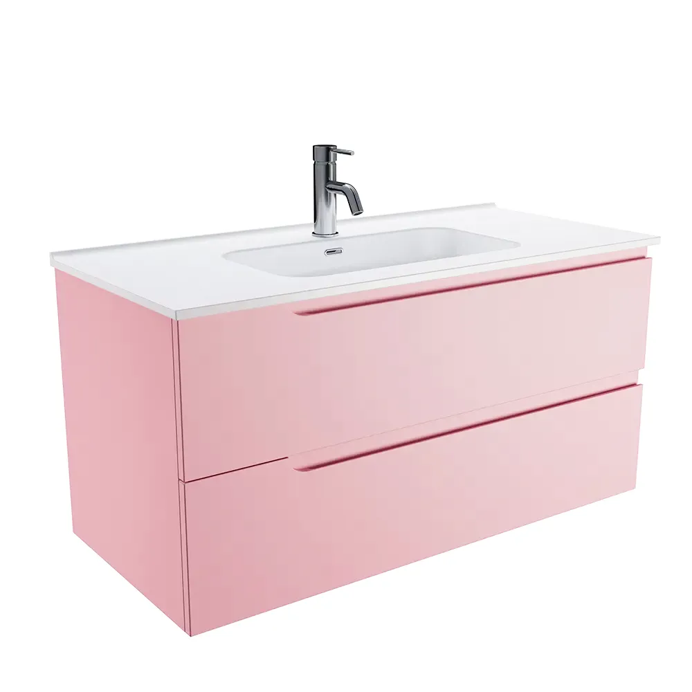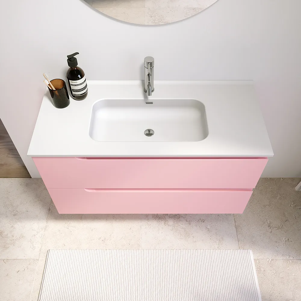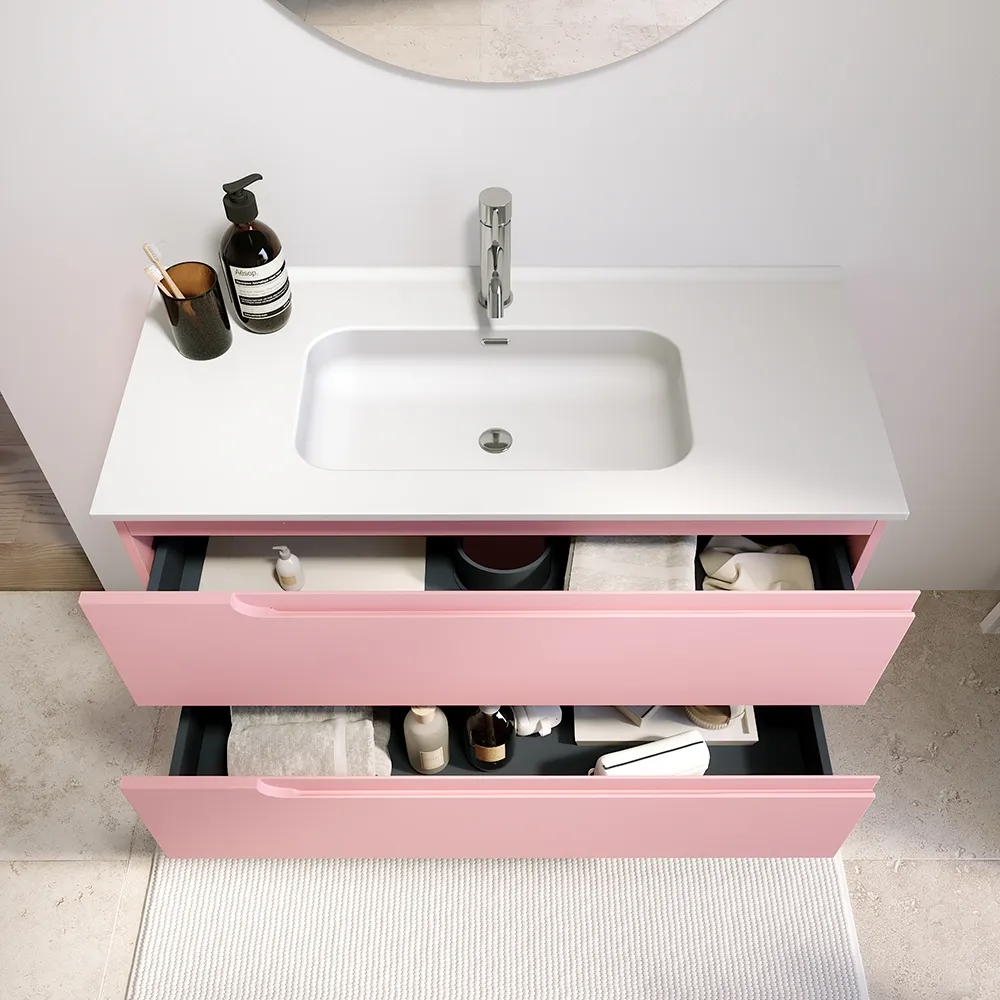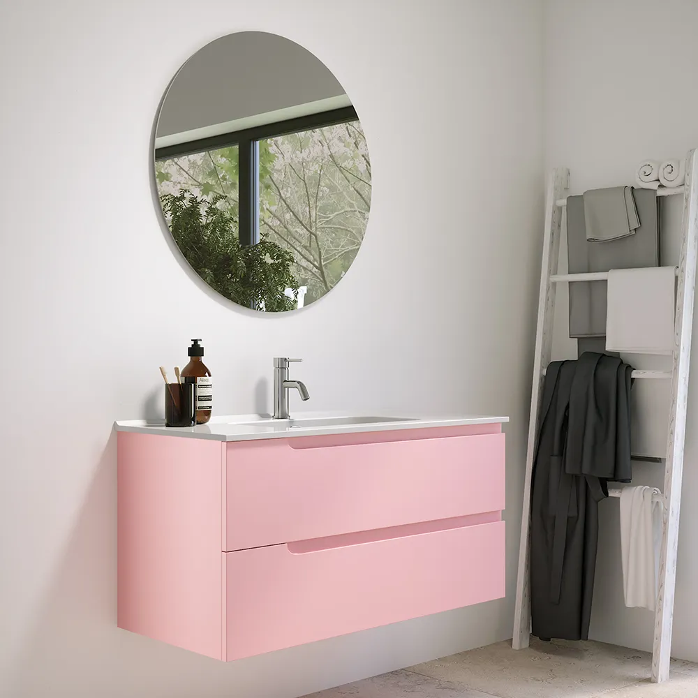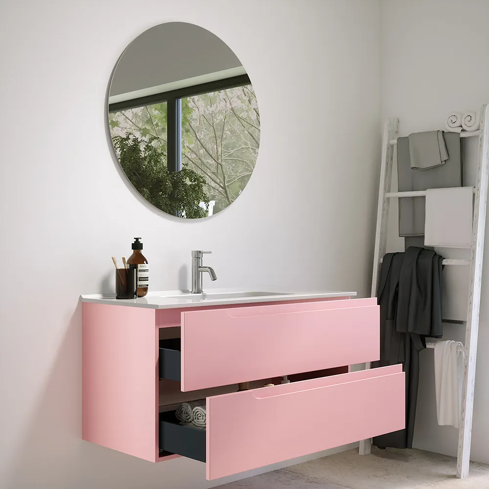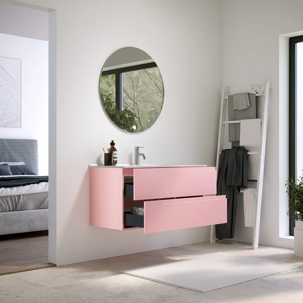 Mobile bagno sospeso 60 cm due cassetti rosa cipria opaco con lavabo | Ardenne