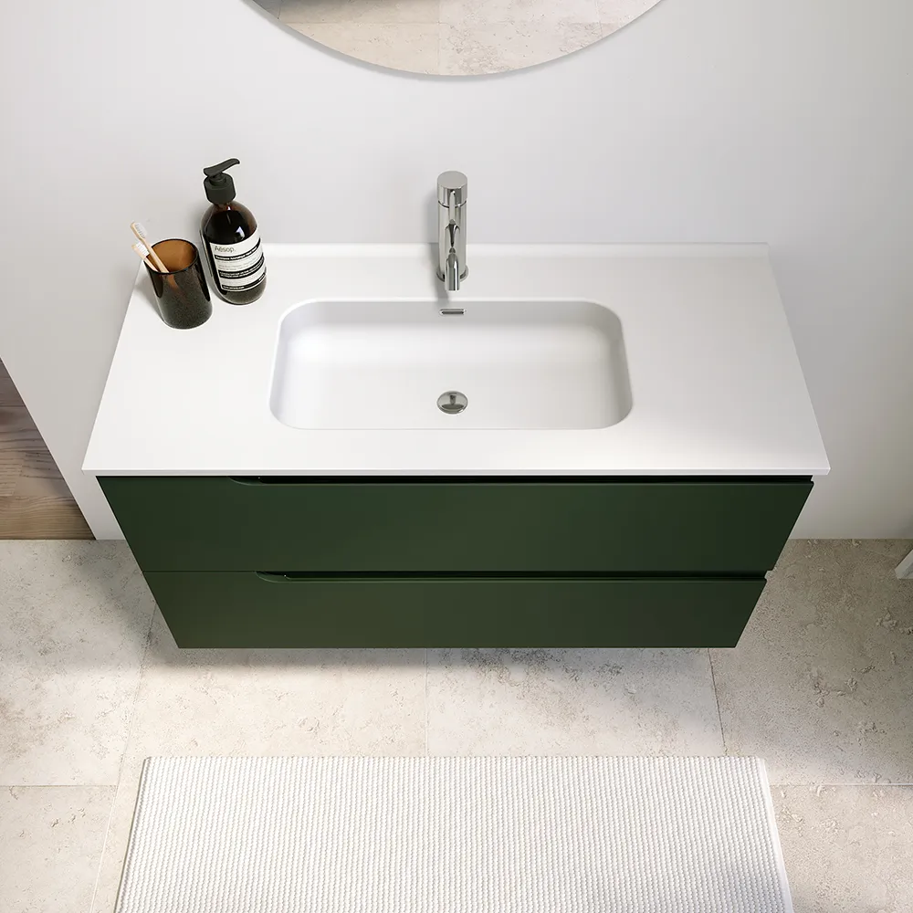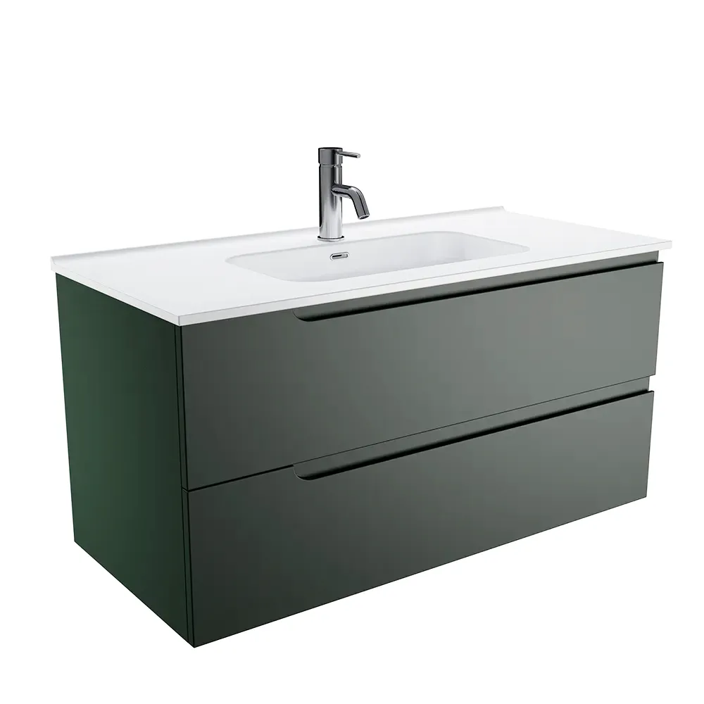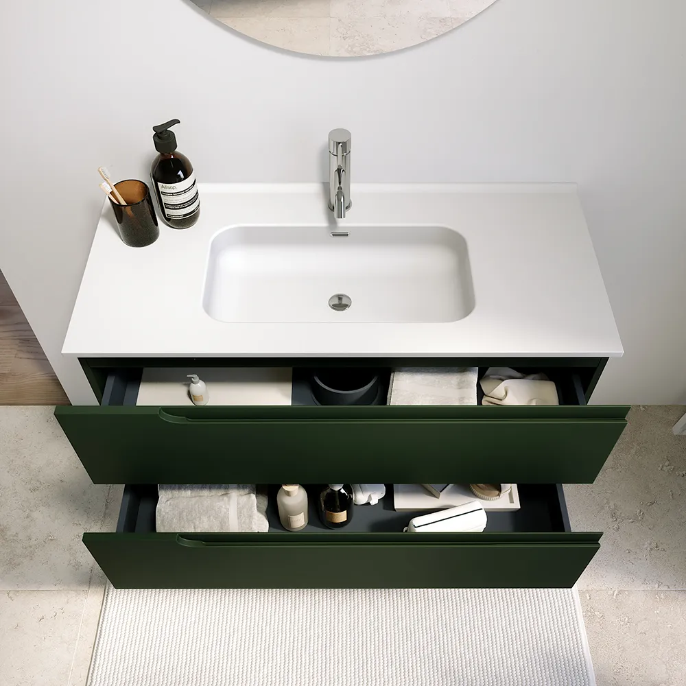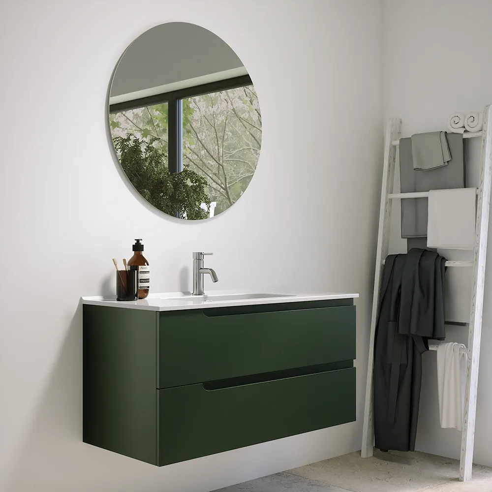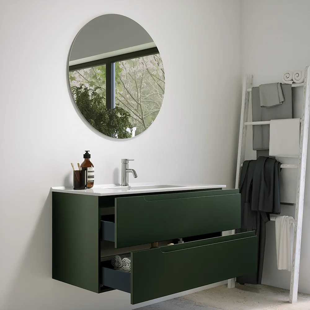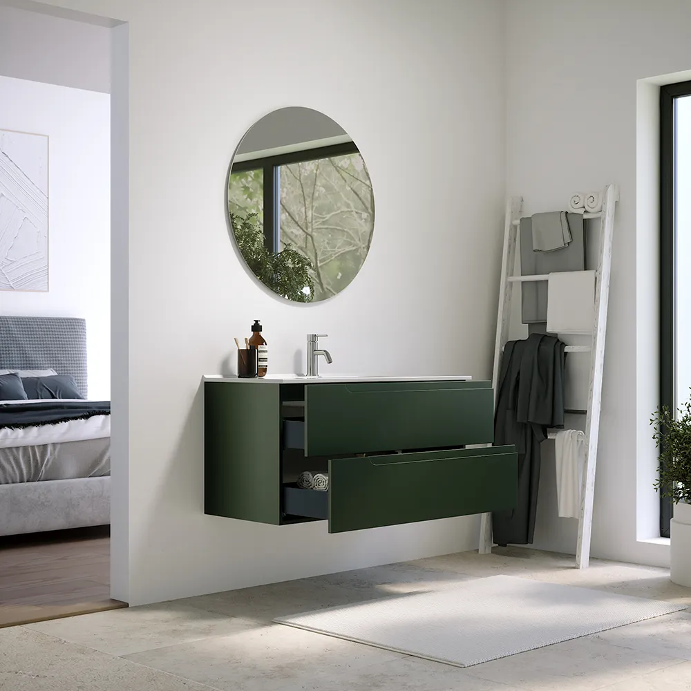 Mobile bagno sospeso 60 cm due cassetti verde foresta opaco con lavabo | Ardenne