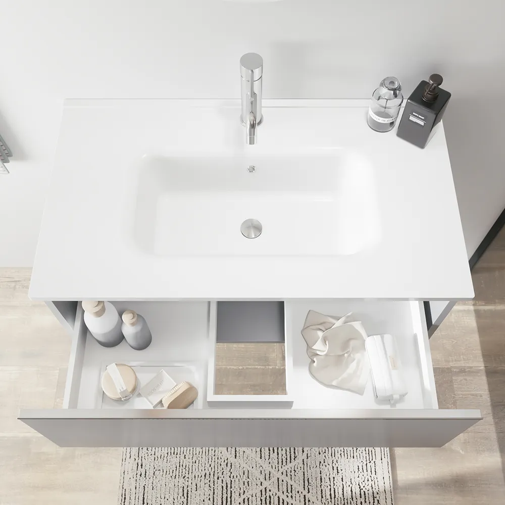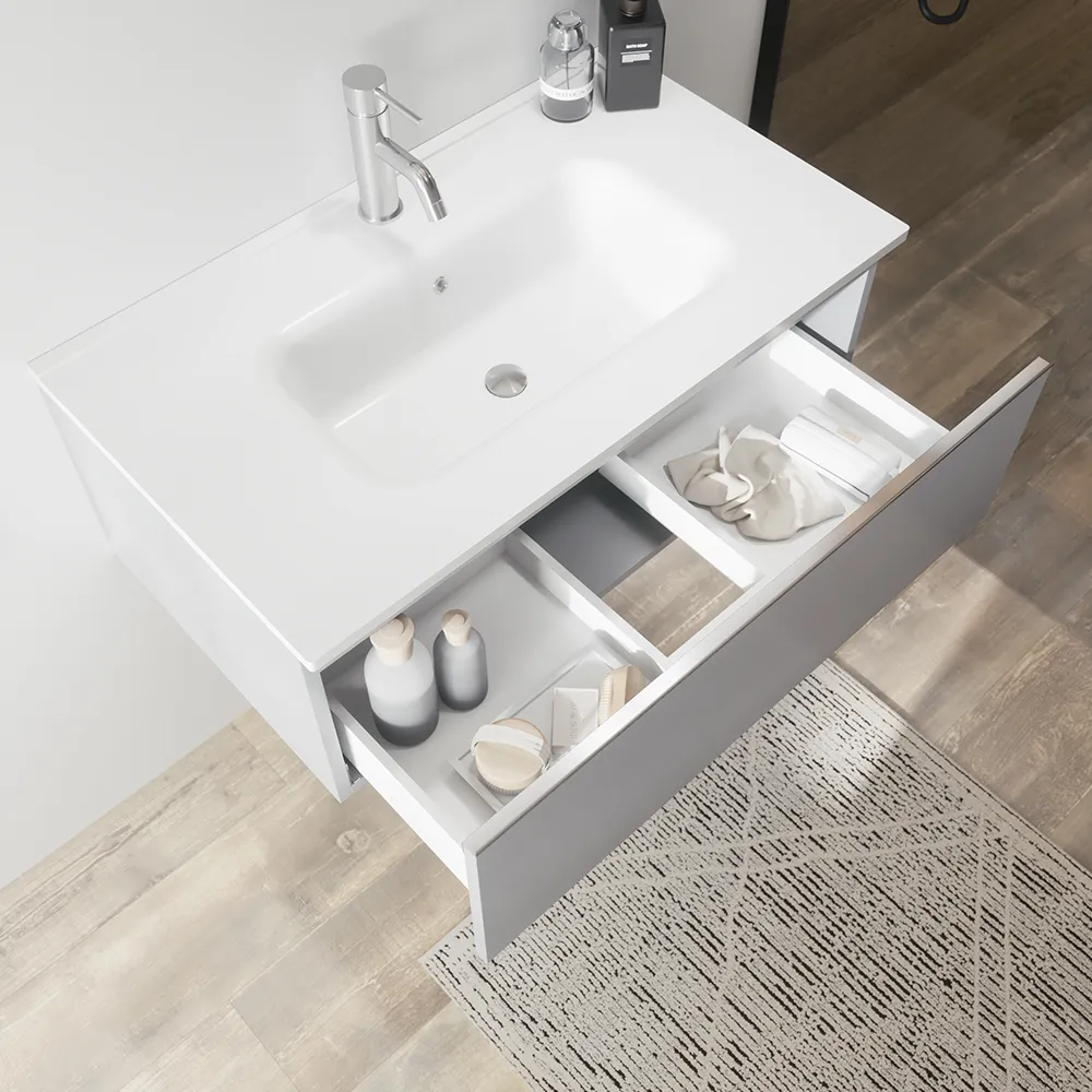 Con la sua installazione sospesa, il mobile da 60 cm regala leggerezza all'ambiente, facilitando le pulizie del pavimento e creando un'estetica moderna e minimale. La finitura grigio perla opaco lo rende estremamente versatile, adattandosi con facilità a qualsiasi stile d'arredo, dal classico al contemporaneo.