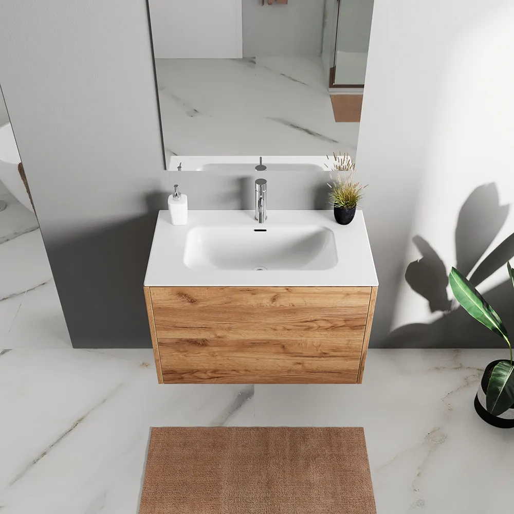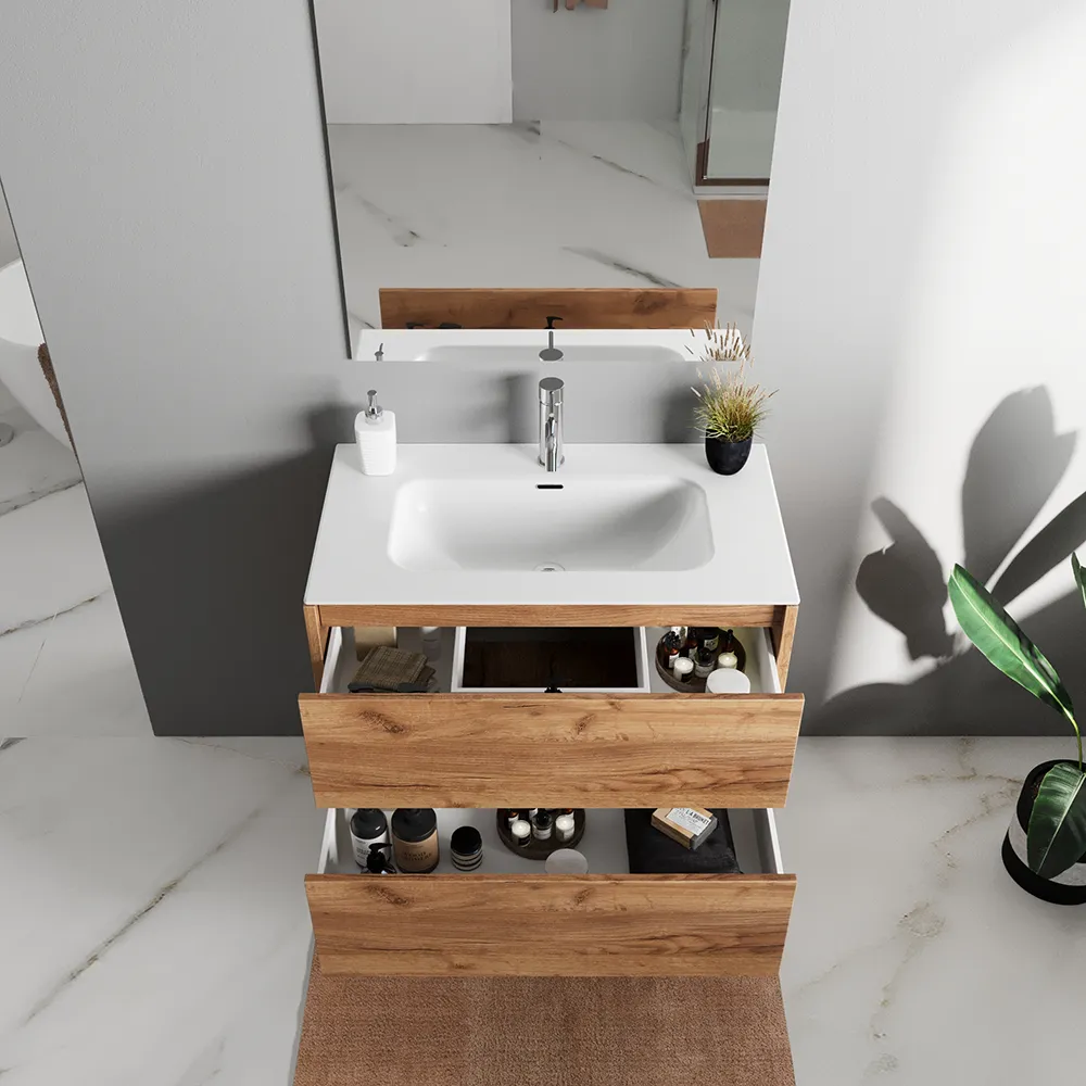 Mobile bagno sospeso 60cm due cassetti apertura push&pull rovere gransasso con lavabo | Galdor