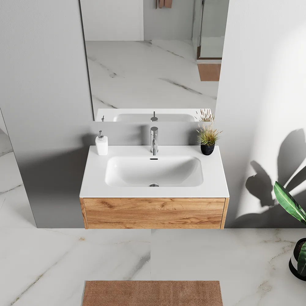 Mobile bagno sospeso 60cm un cassetto apertura push&pull rovere gransasso con lavabo | Galdor