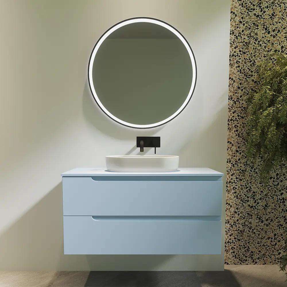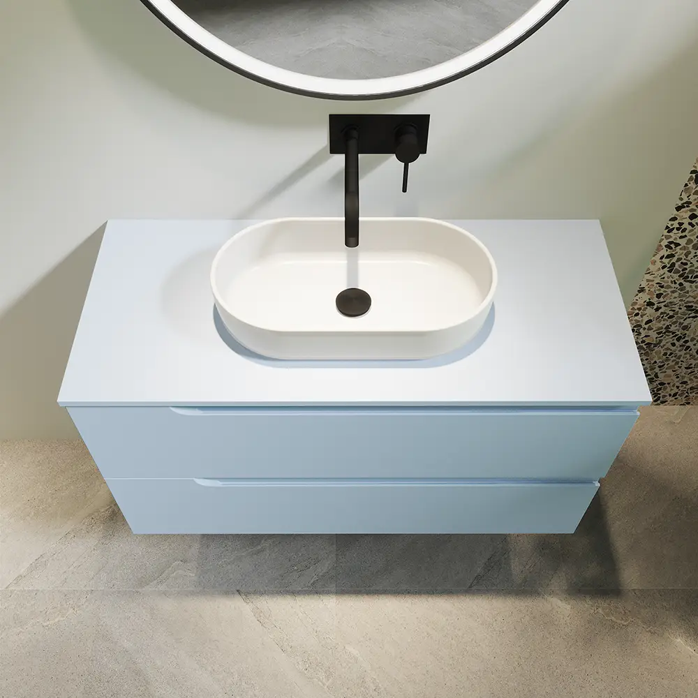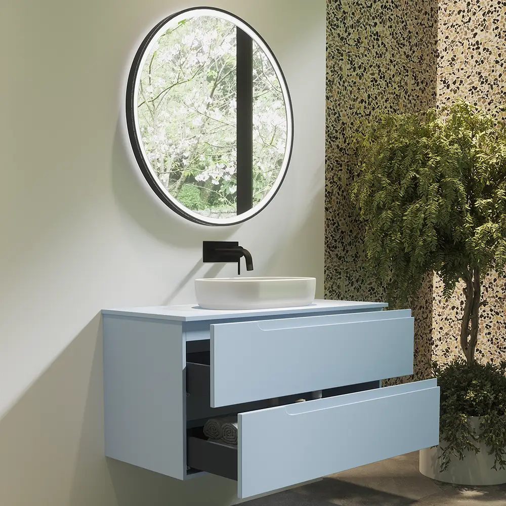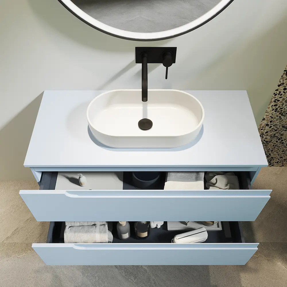 Mobile bagno sospeso 70 cm due cassetti color carta da zucchero con top | Moor