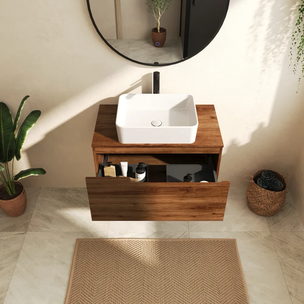 Il top per lavabo da appoggio consente di scegliere il lavabo più adatto al proprio stile, offrendo libertà di personalizzazione e un’eleganza senza tempo.