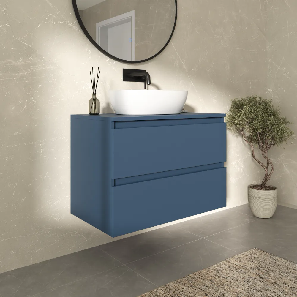 Mobile bagno sospeso 70cm due cassetti alby blue con top | Hexa