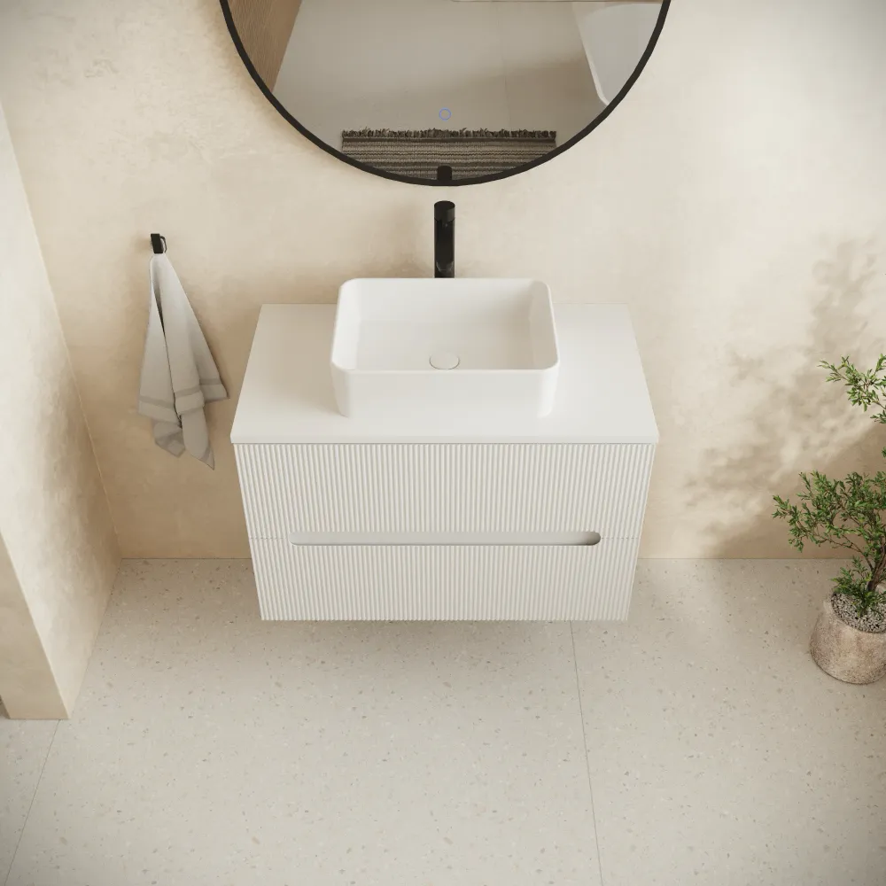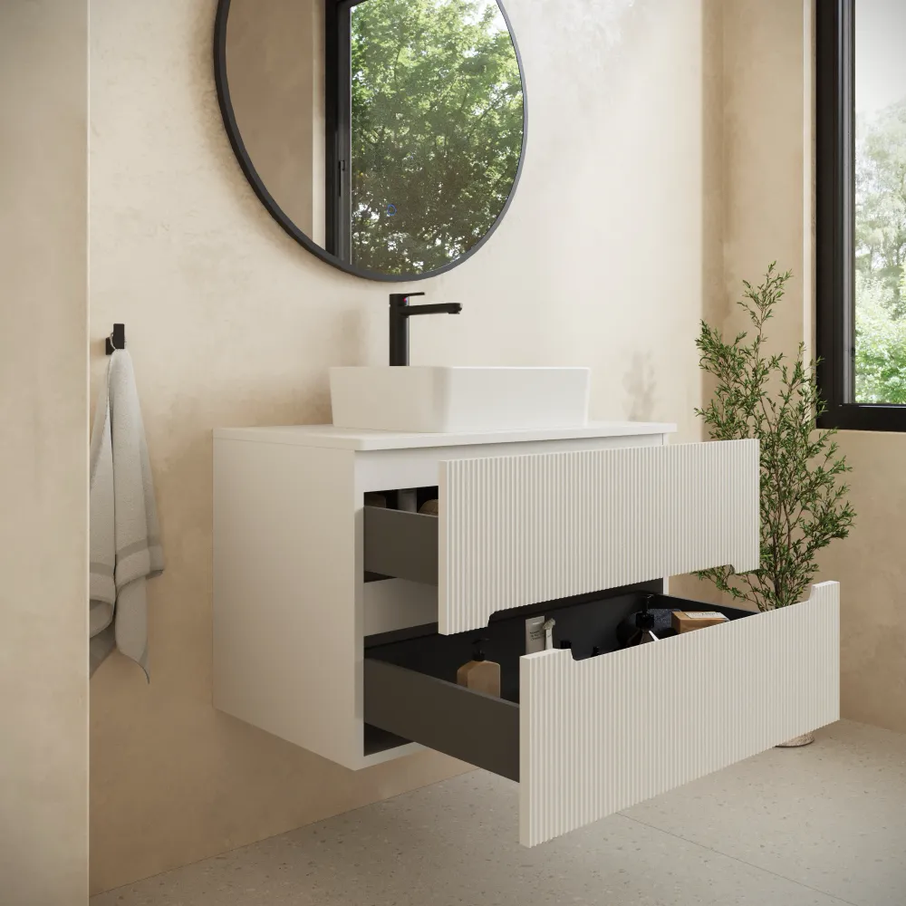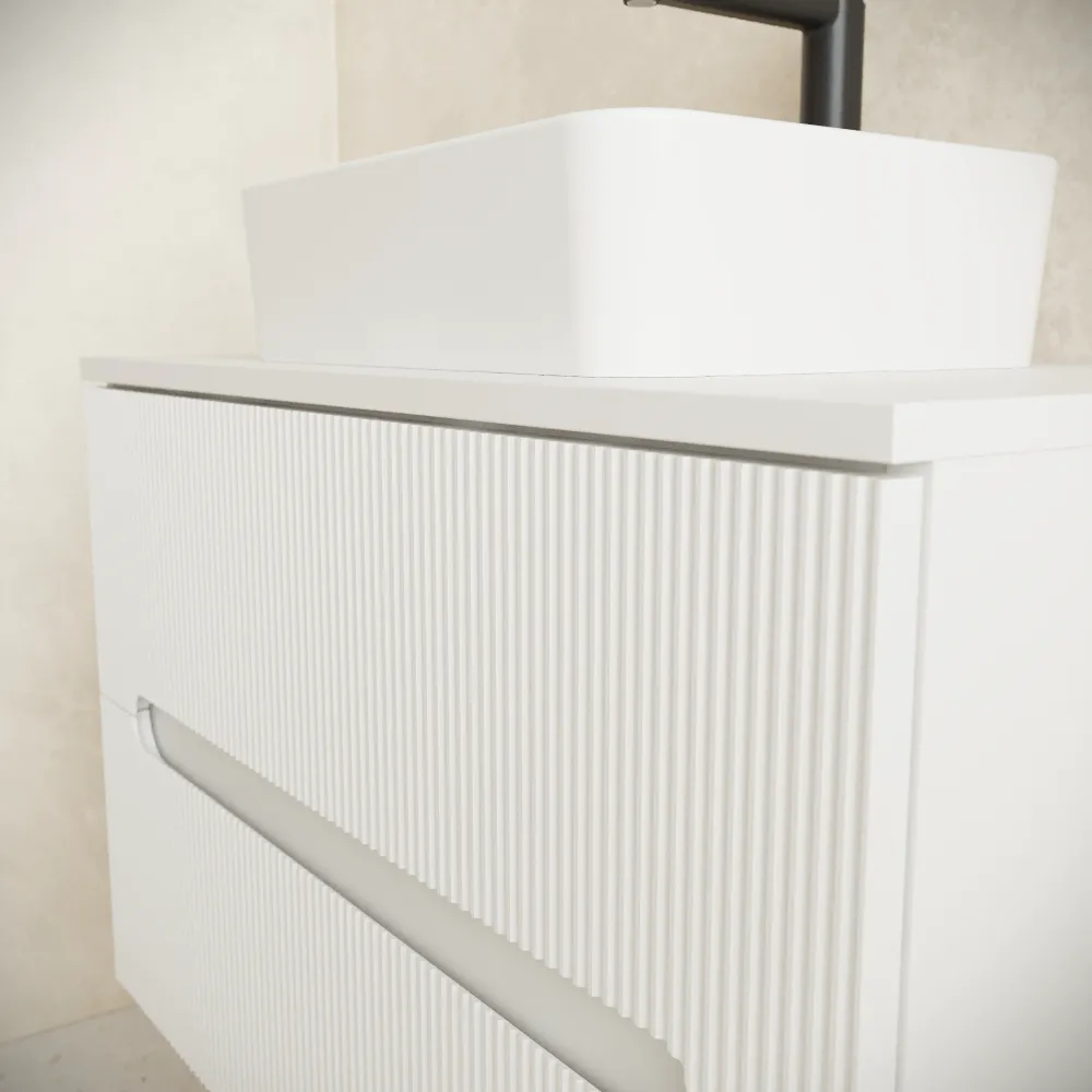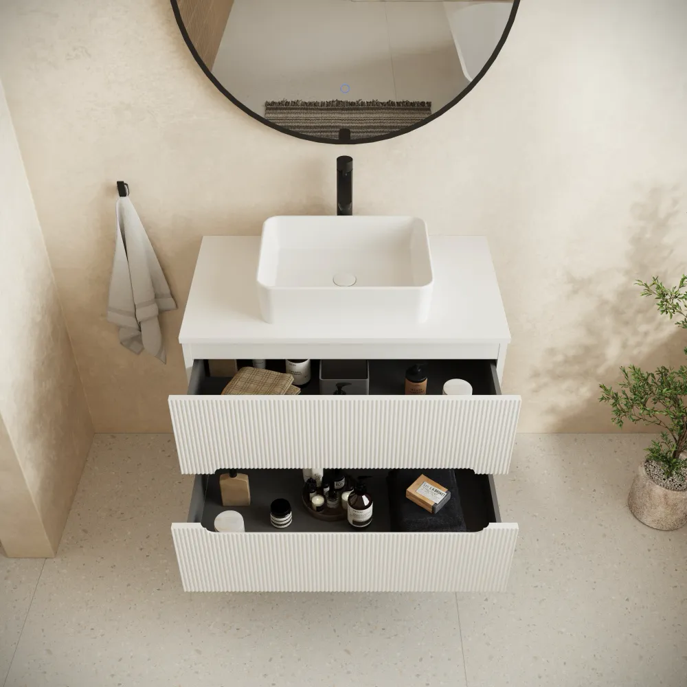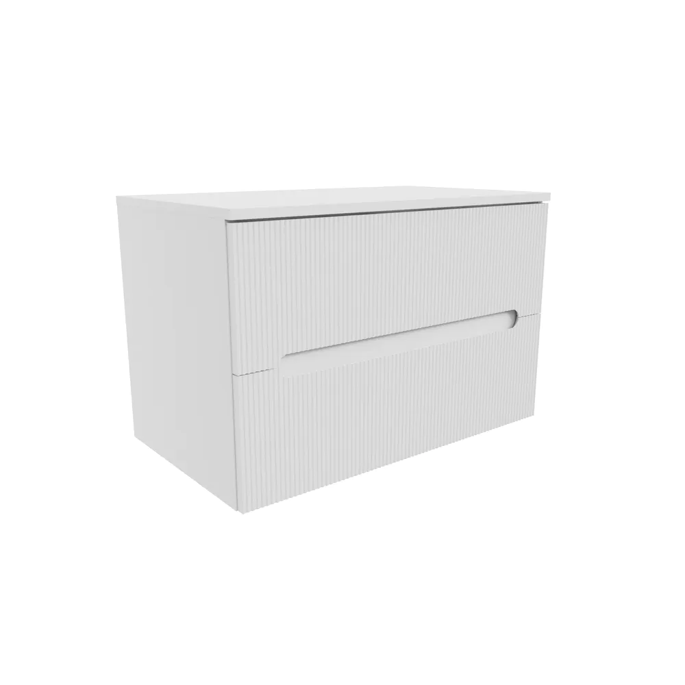 Mobile bagno sospeso 70cm due cassetti bianco opaco cannettato con top | Tigua