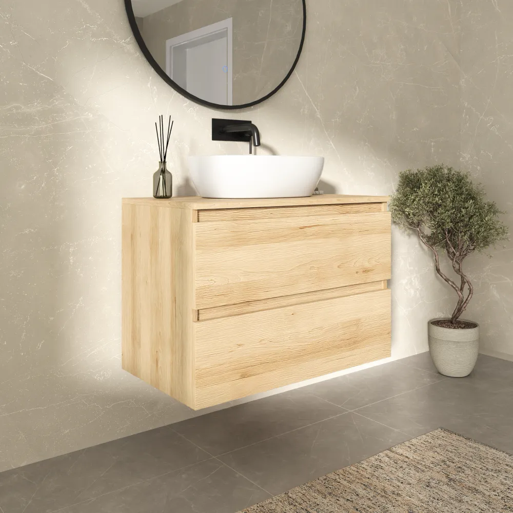 Mobile bagno sospeso 70cm due cassetti rovere chiaro stone oak con top | Hexa
