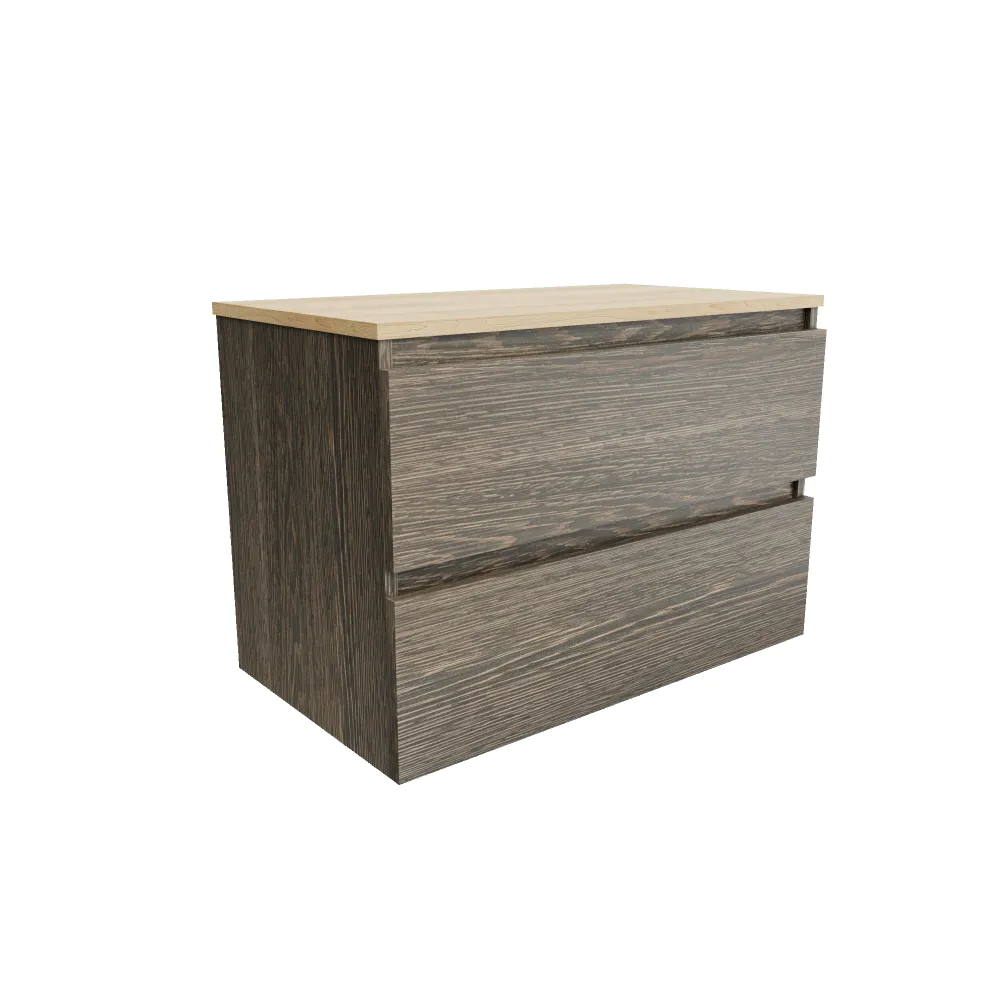 Mobile bagno sospeso 70cm due cassetti rovere scuro con top rovere chiaro | Hexa