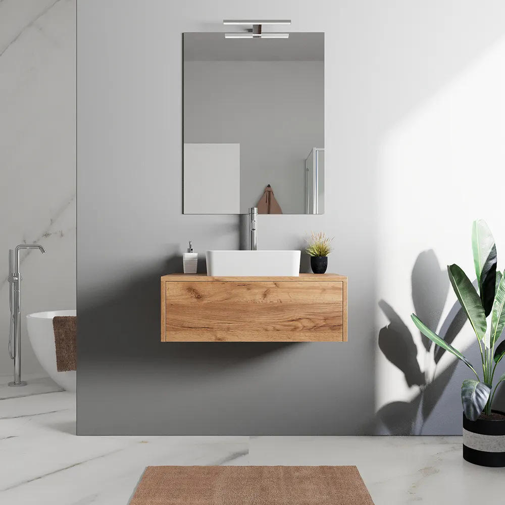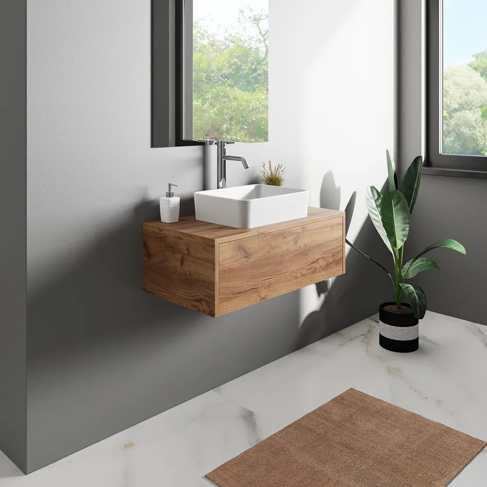 Mobile bagno sospeso 70cm un cassetto apertura push&pull rovere gransasso con top | Galdor