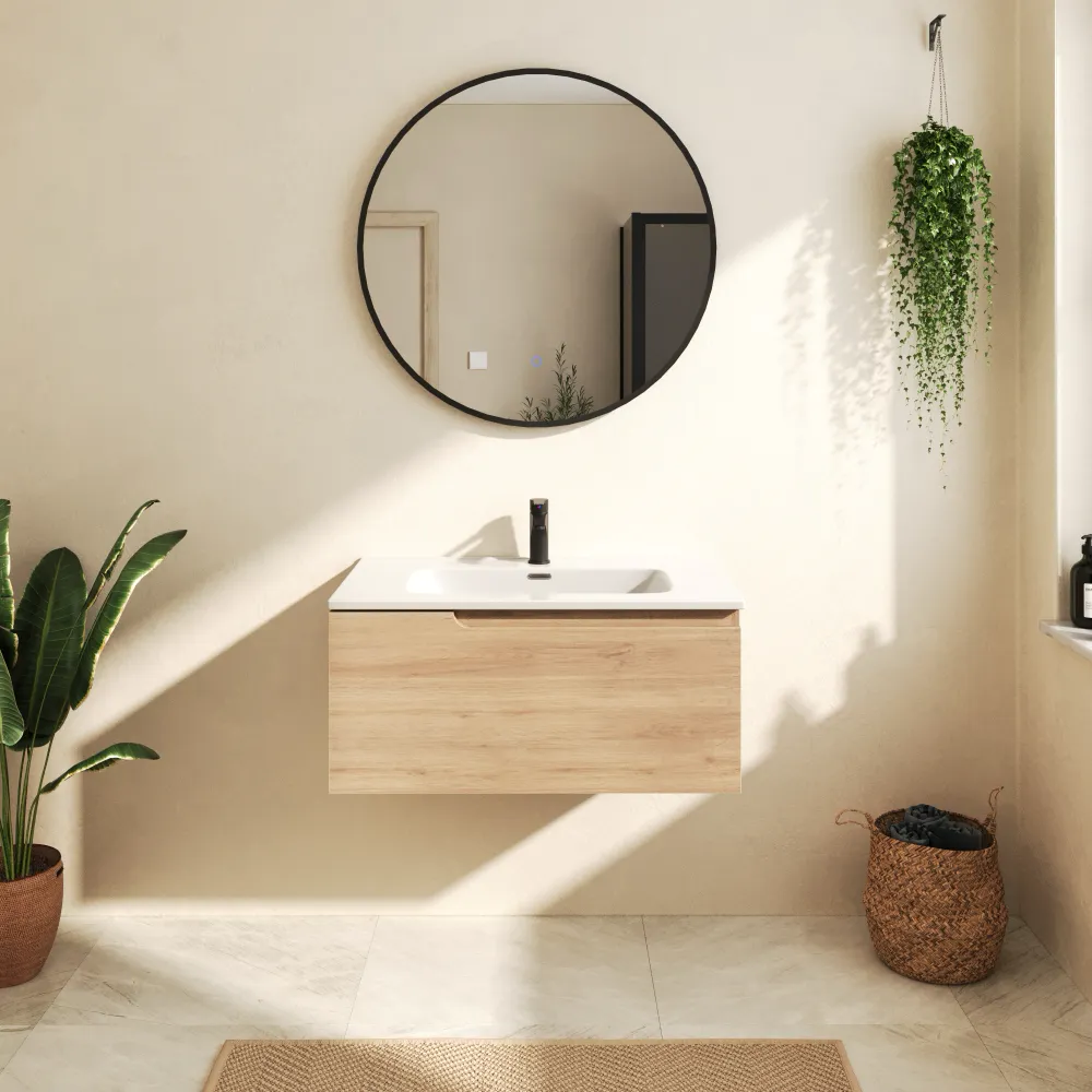 Con il suo design pulito e moderno, questo mobile da bagno sospeso trasforma la tua area bagno in uno spazio funzionale e alla moda, perfetto per soddisfare le esigenze quotidiane con stile.