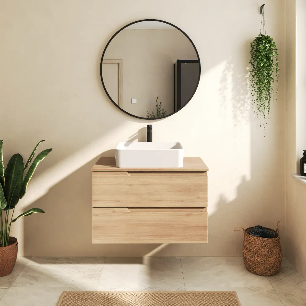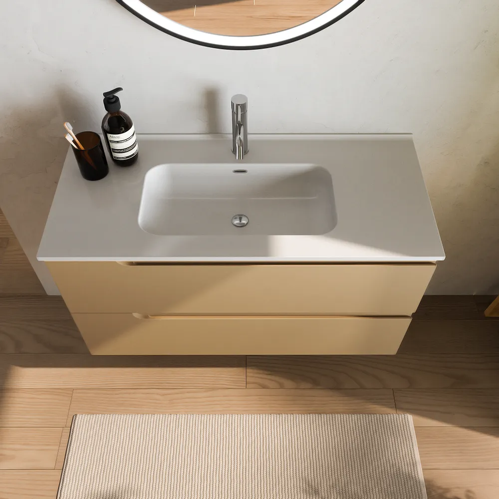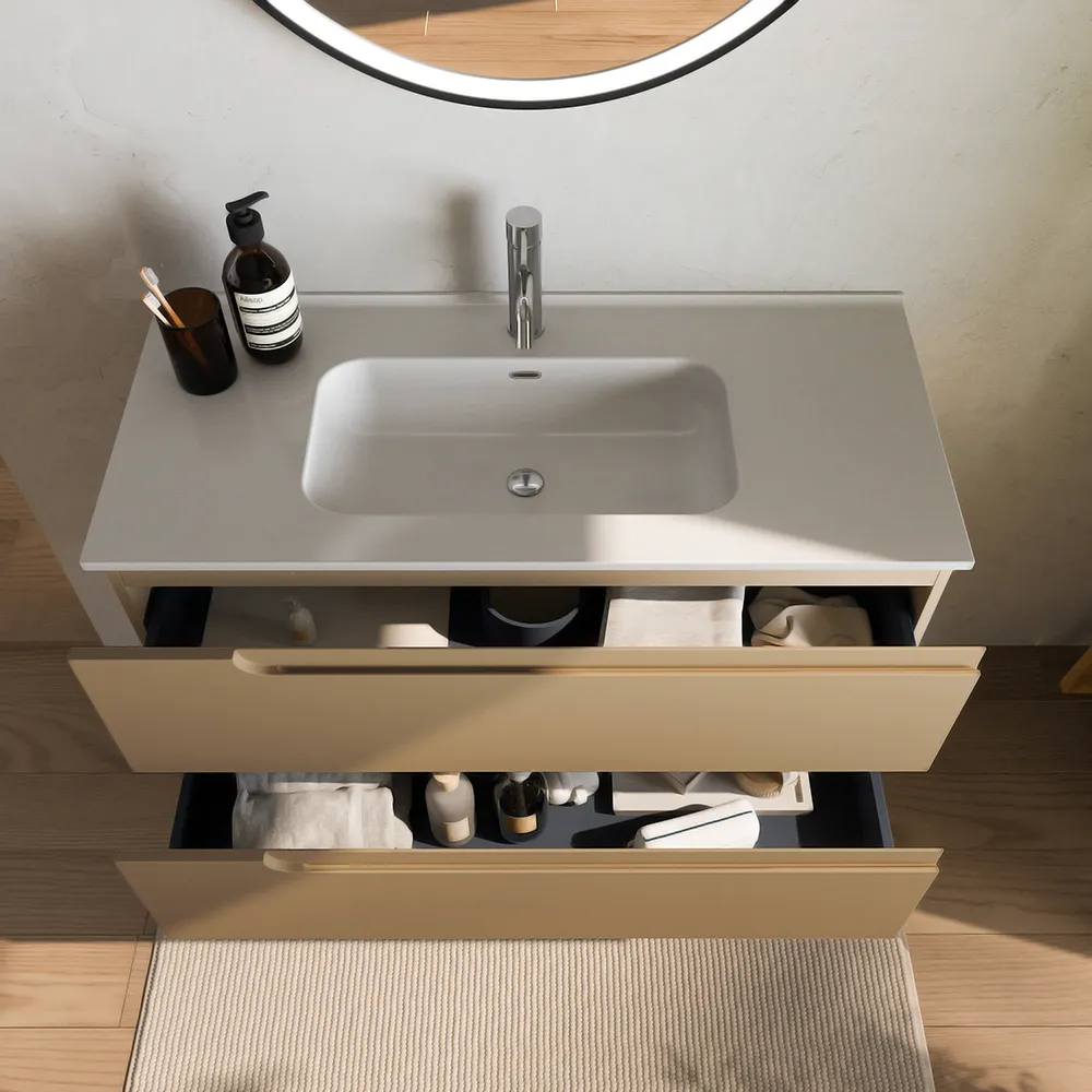 Mobile bagno sospeso 80 cm due cassetti sabbia opaco con lavabo | Ardenne