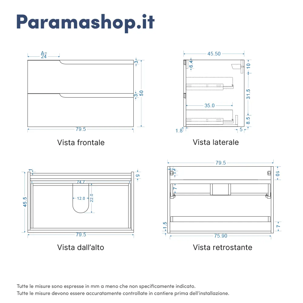 Il mobile dispone di due cassetti con la tecnologia soft close, il che significa che si chiude in modo delicato e silenzioso senza sbattere. Questa caratteristica non solo prolunga la durata del mobile, ma evita chiusure accidentali e per garantire un'esperienza d'uso sicura e confortevole.