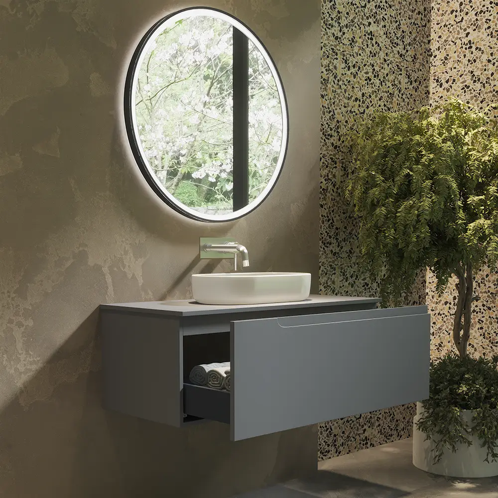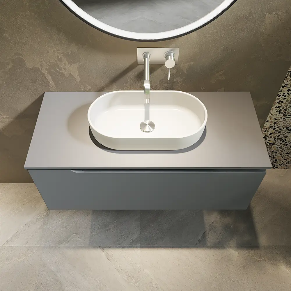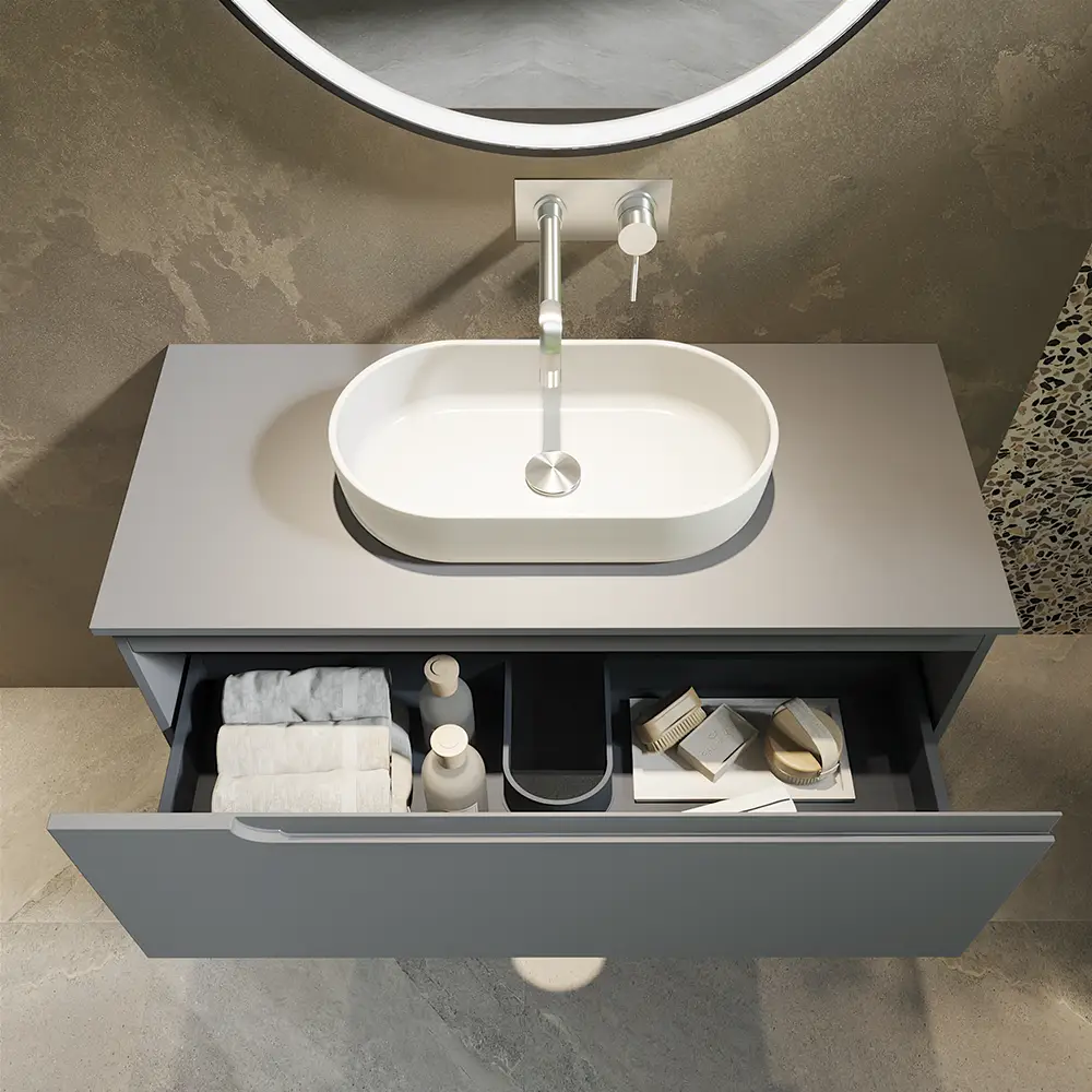 Mobile bagno sospeso 80 cm un cassetto color grigio opaco con top | Moor