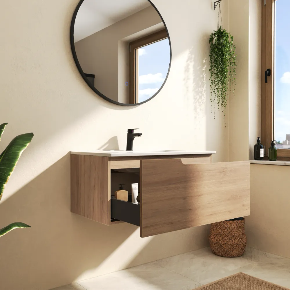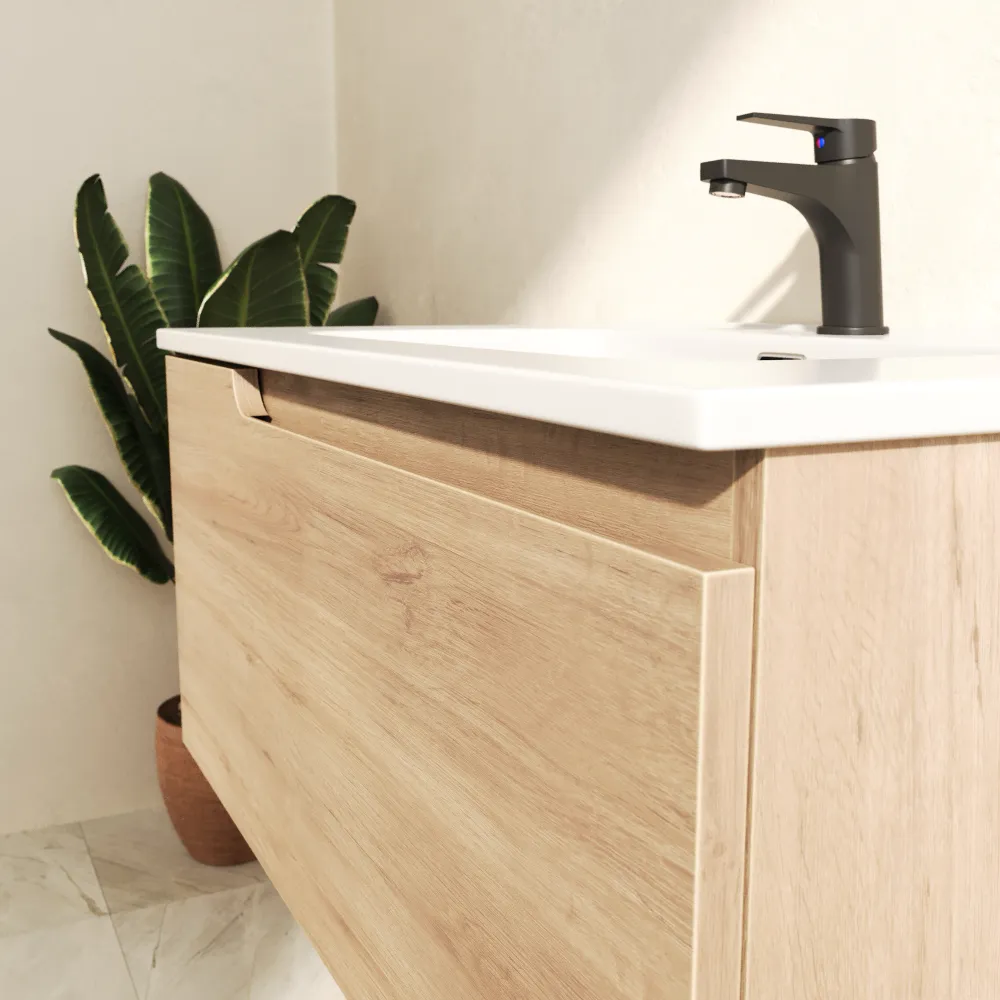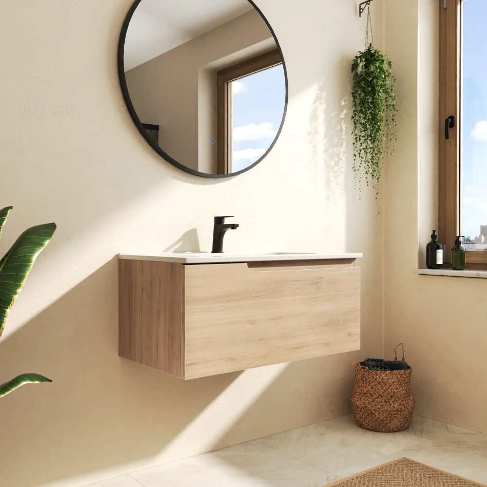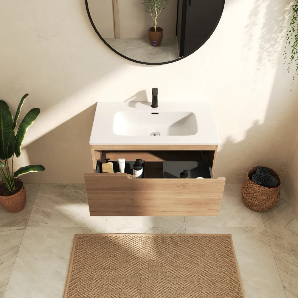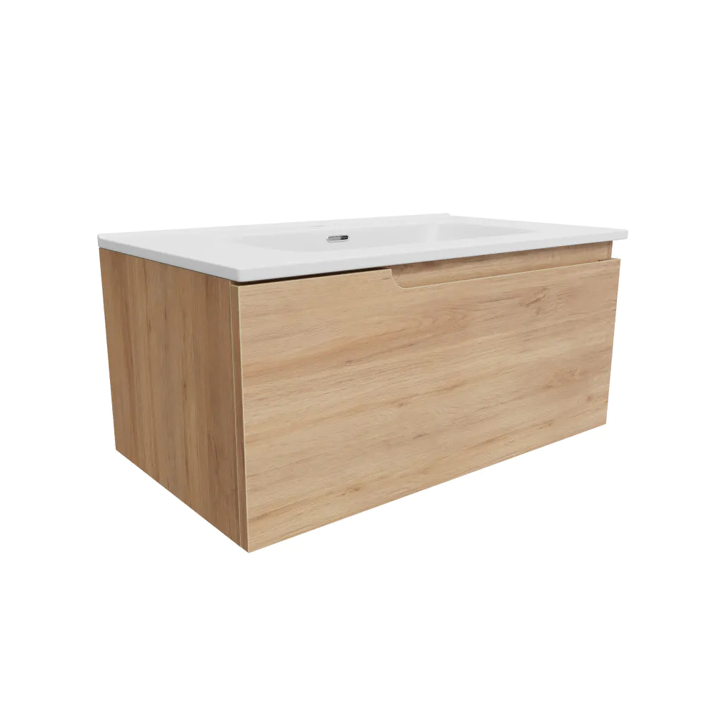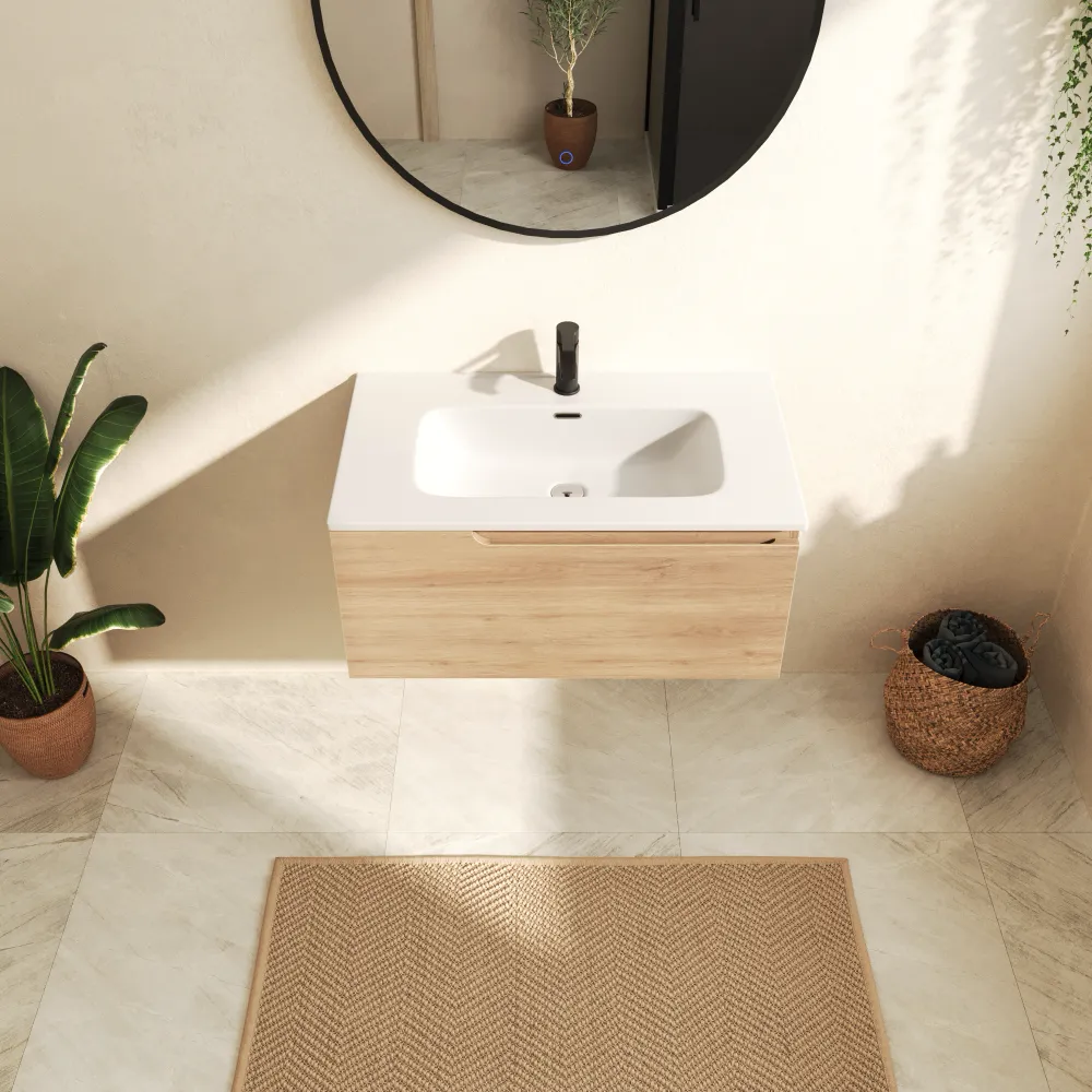 Mobile bagno sospeso 80 cm un cassetto rovere chiaro con lavabo | Berg