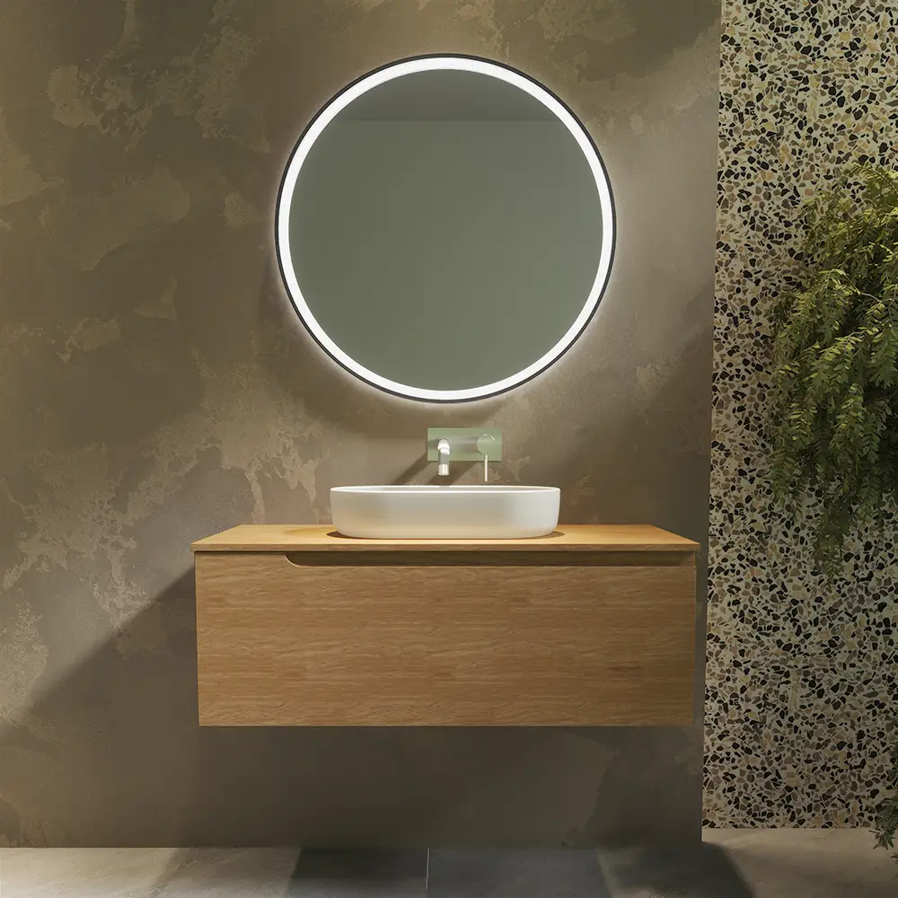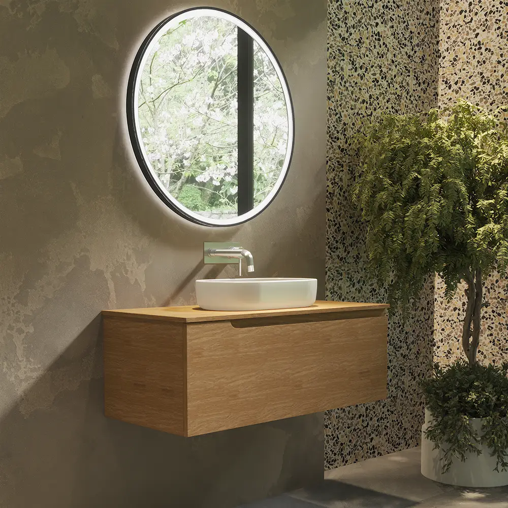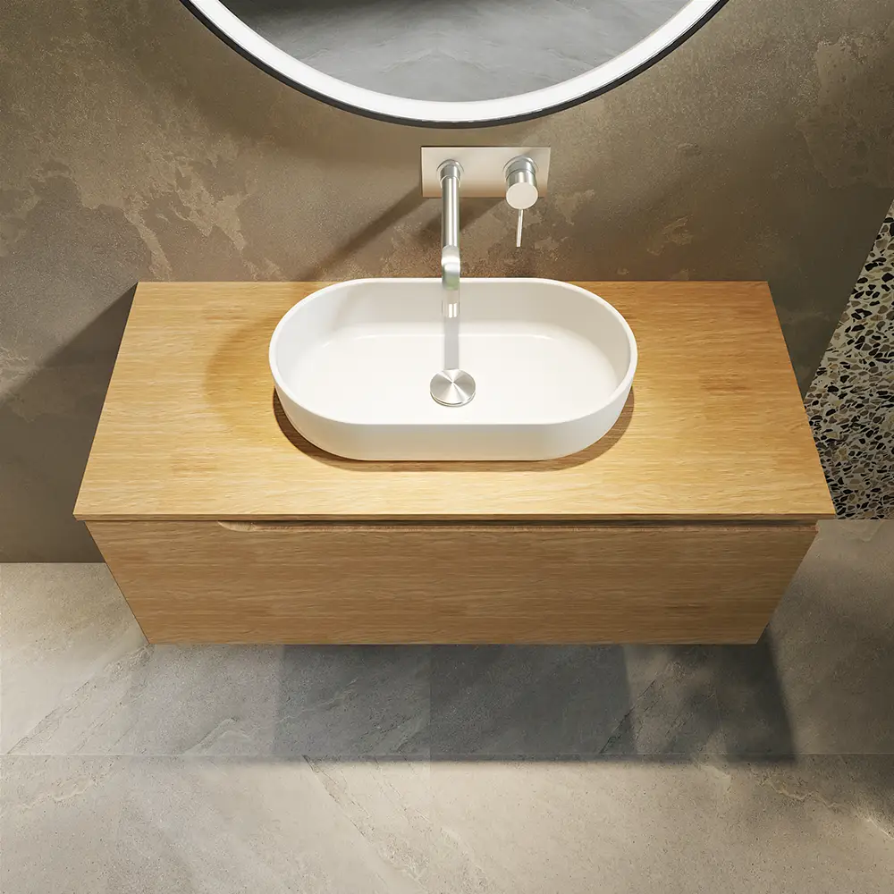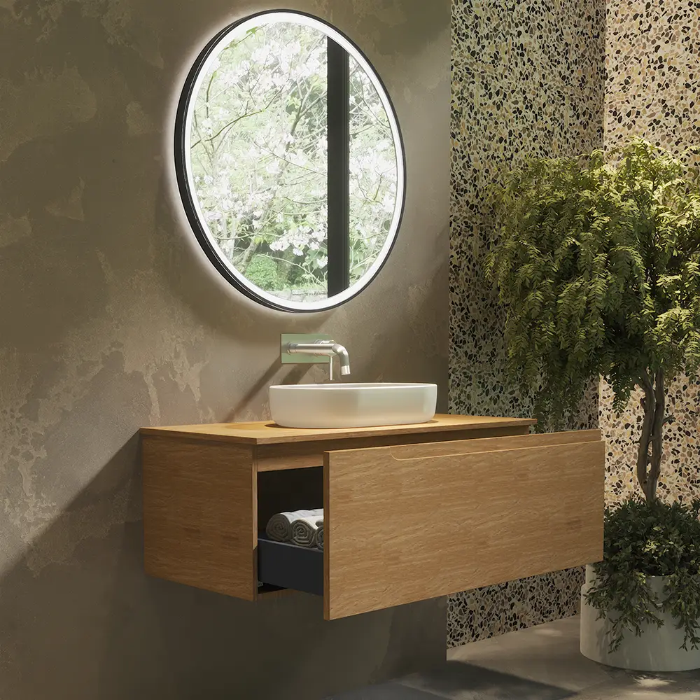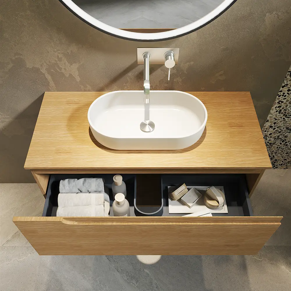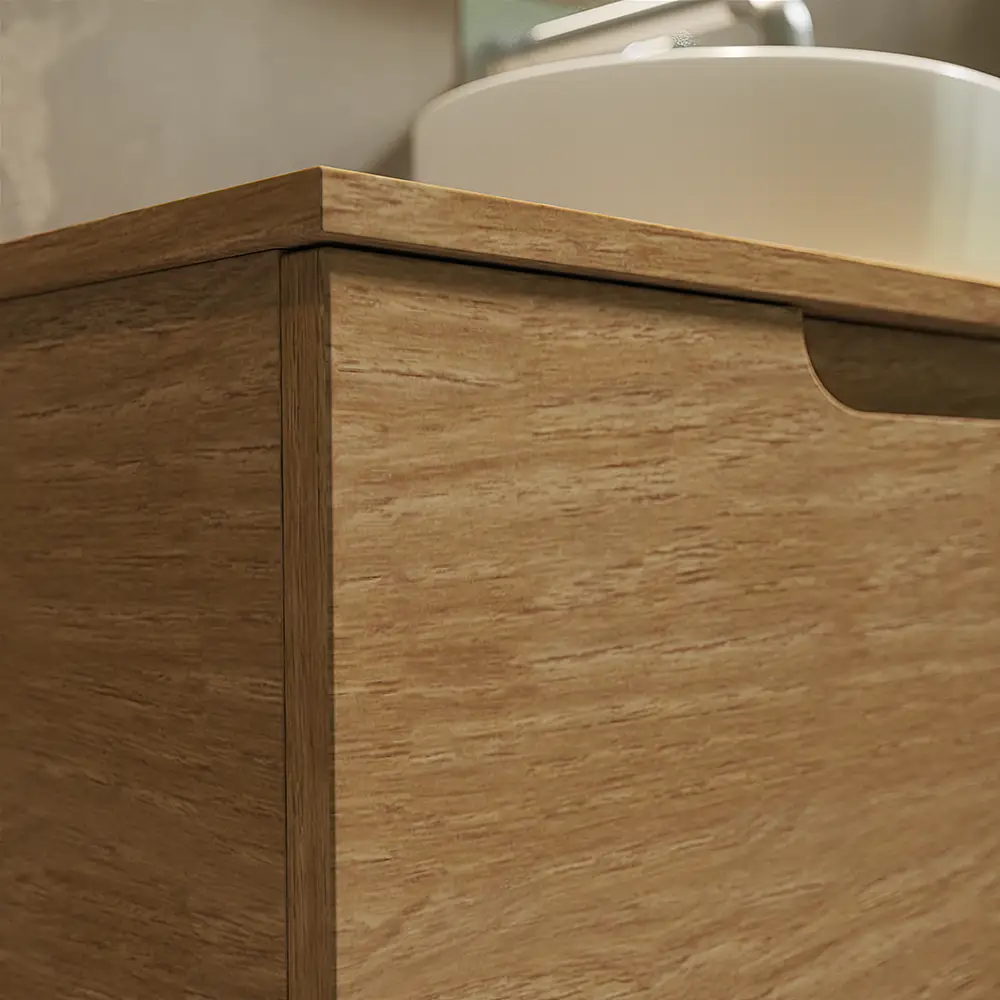Mobile bagno sospeso 80 cm un cassetto rovere chiaro con top | Moor