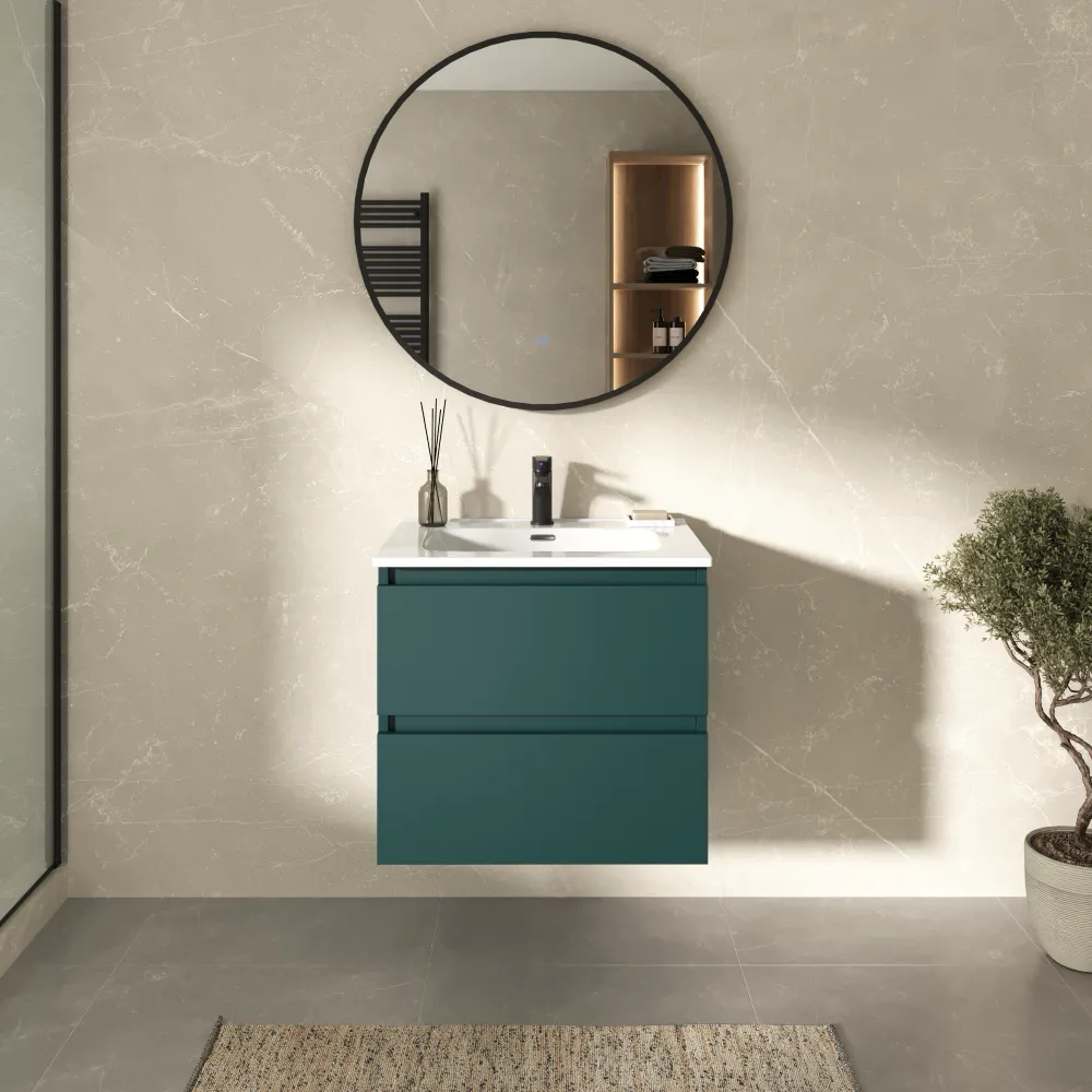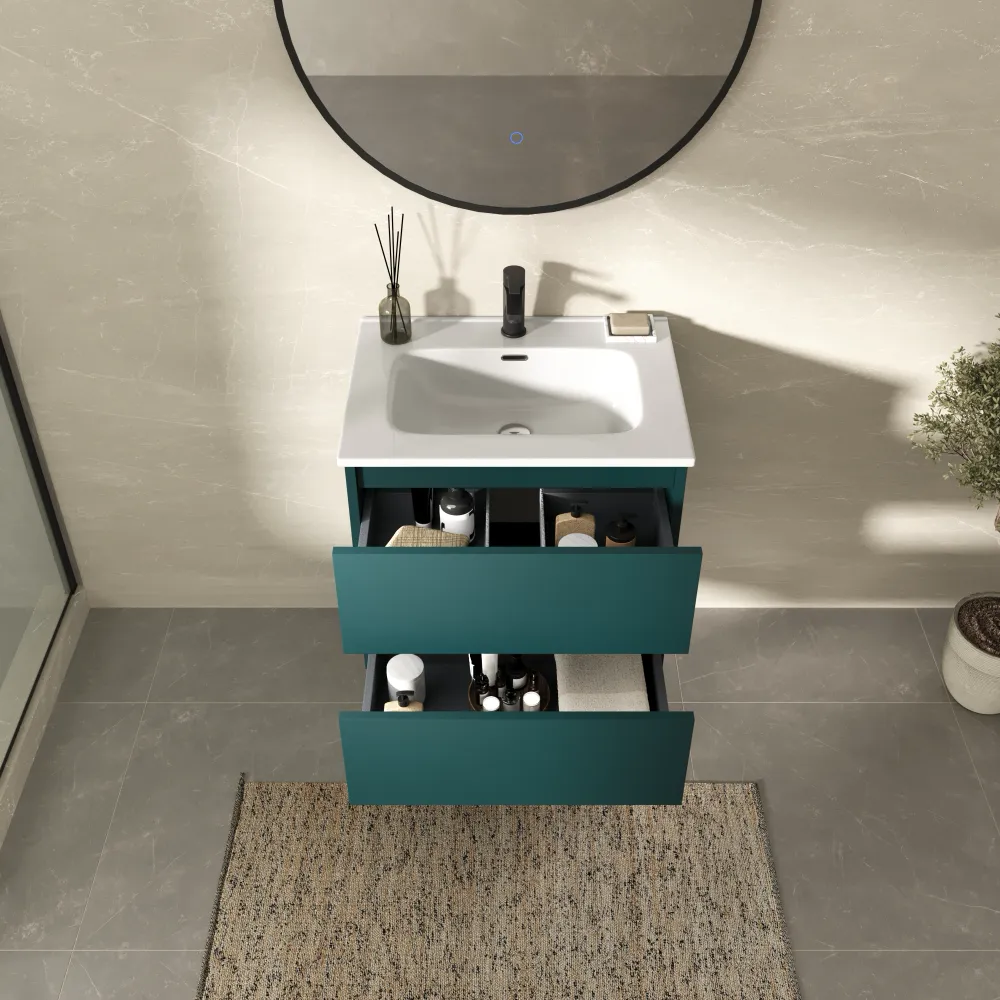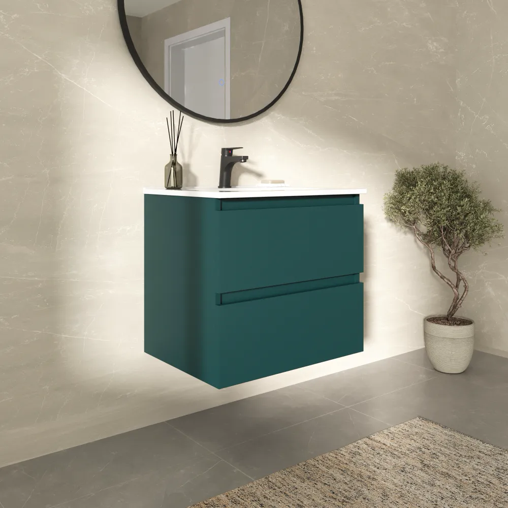 Mobile bagno sospeso 80cm due cassetti petrol con lavabo | Hexa