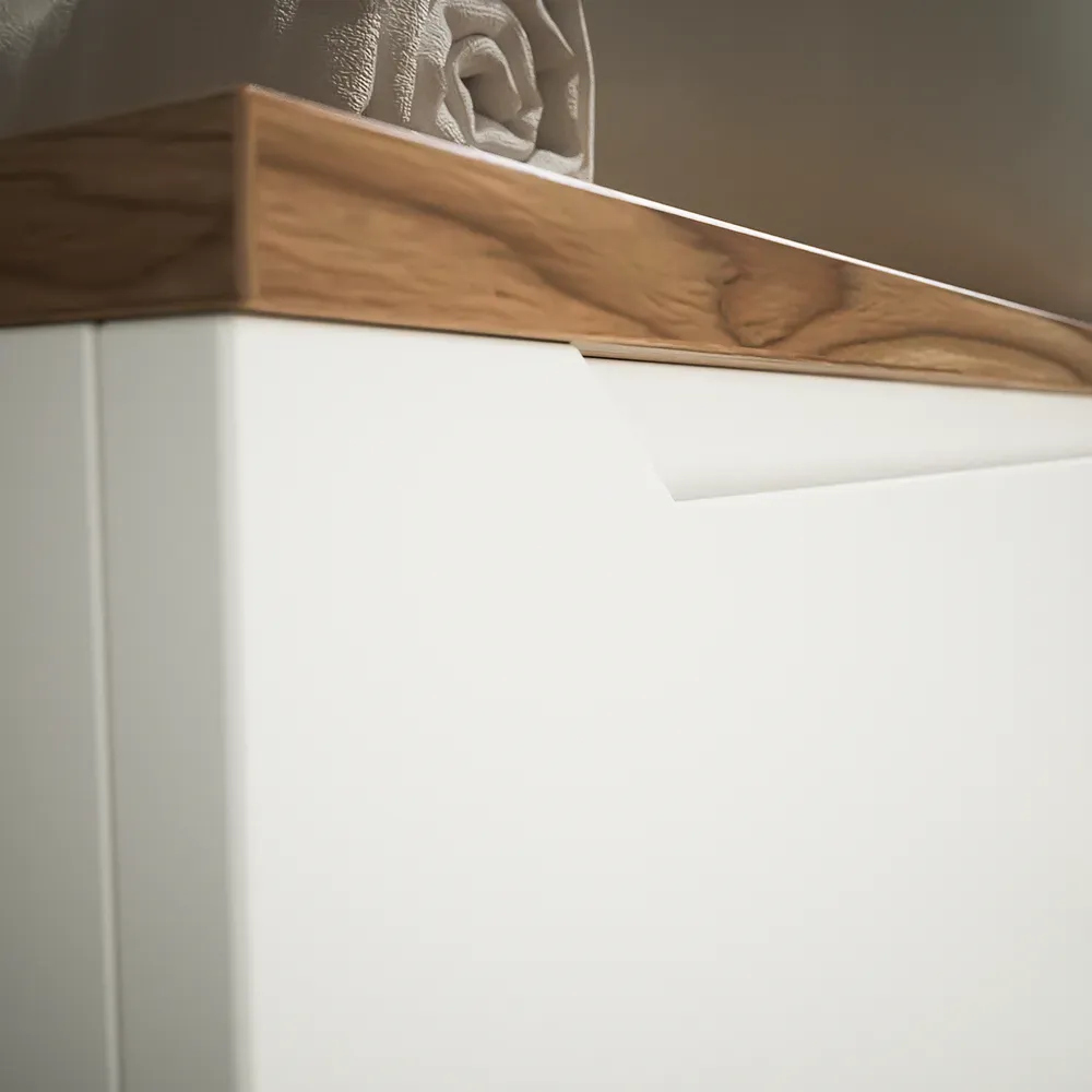 Ma la vera forza di Bako è la sua funzionalità. Il capiente cassettone con chiusura soft-close offre ampio spazio per riporre i tuoi accessori da bagno, mantenendo l'ordine e l'eleganza del tuo ambiente. La chiusura soft-close garantisce un movimento fluido e silenzioso, evitando urti e rumori fastidiosi.
