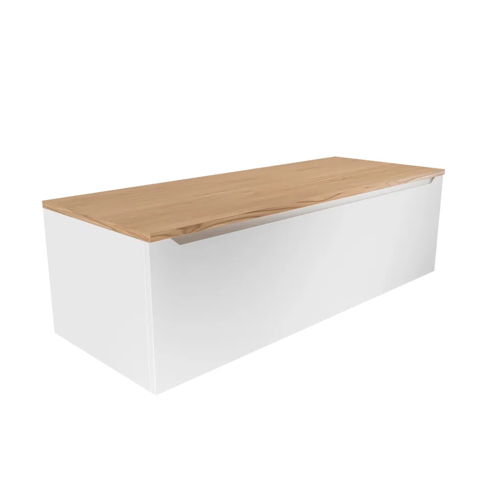 Mobile bagno sospeso 90 cm bianco opaco un cassettone con top rovere chiaro | Bako