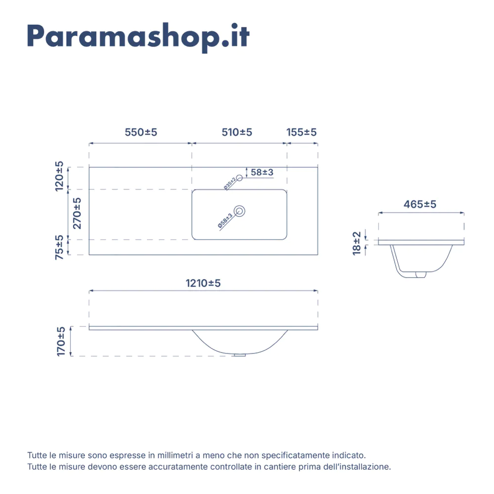 - Lavabo in ceramica decentrato con vasca a destra 120cm