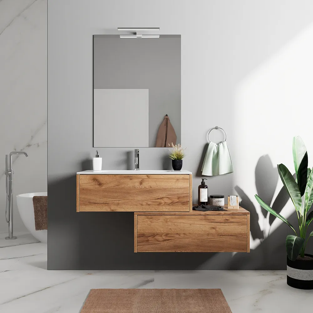 Mobile bagno sospeso modulare 100cm due cassetti apertura push&pull rovere gransasso con lavabo | Galdor