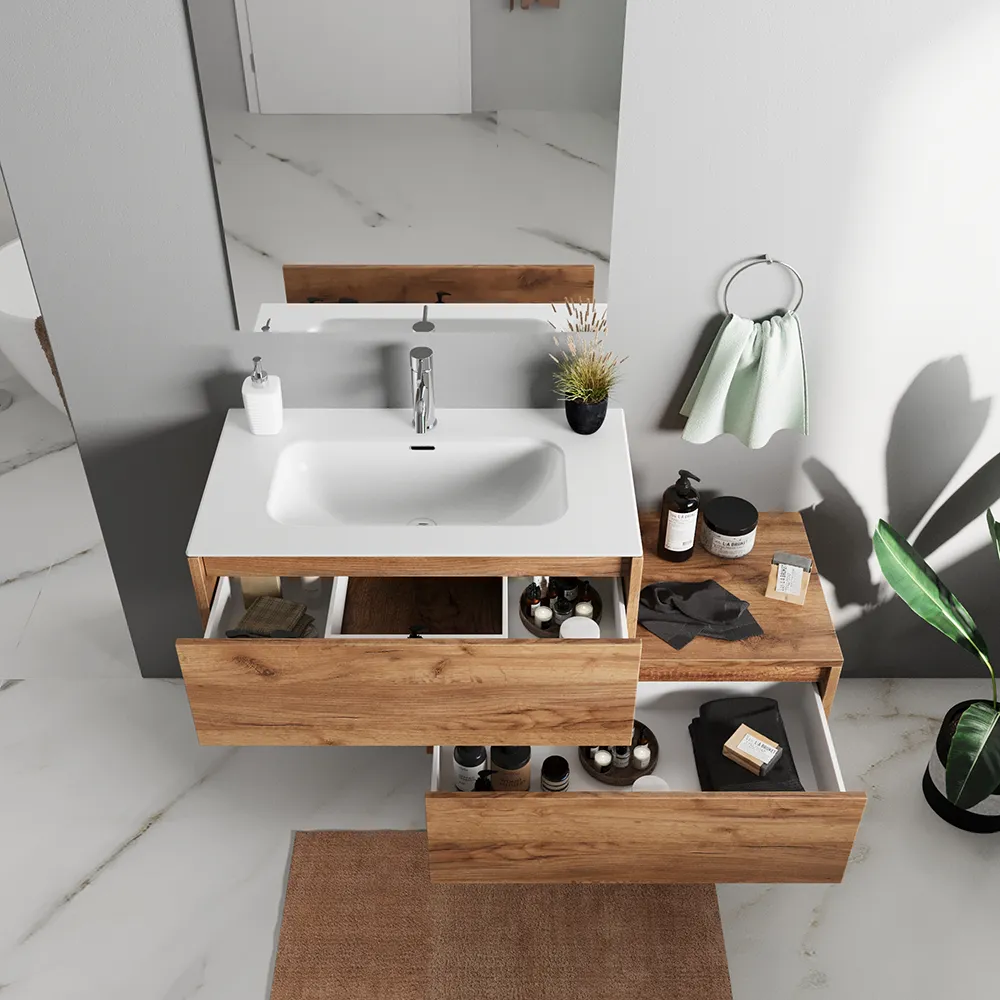 Il mobile da bagno sospeso modello Galdor da 100cm rappresenta una soluzione d'arredo elegante e moderna. La scelta dell'installazione sospesa non è solo una tendenza di design, ma anche una soluzione intelligente per ottimizzare lo spazio, conferendo leggerezza all'ambiente e facilitando le operazioni di pulizia del pavimento.