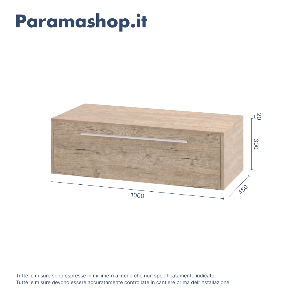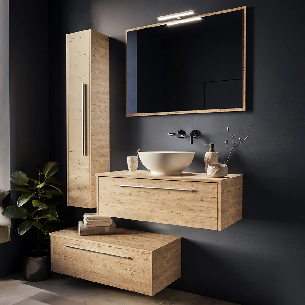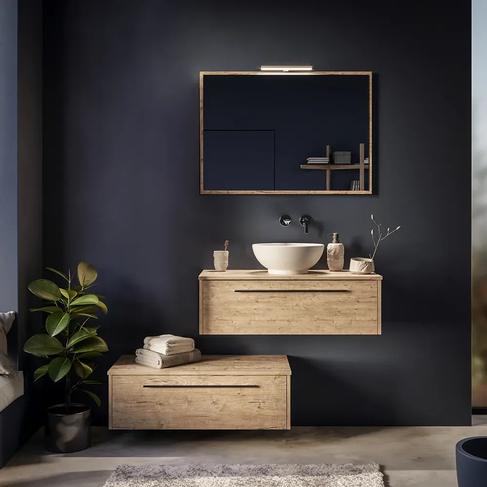 Mobile bagno sospeso modulare 100cm due cassetti rovere naturale con top e specchio | Aoki