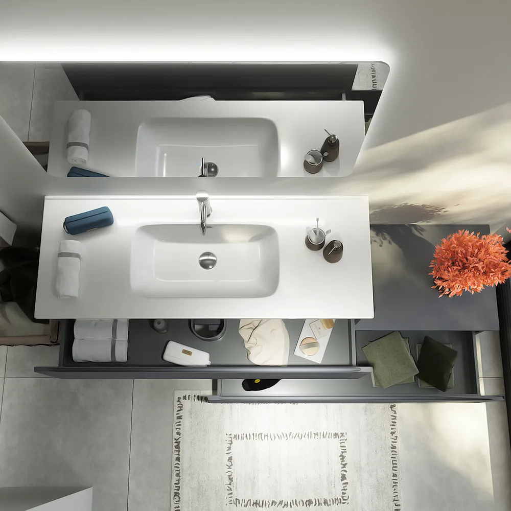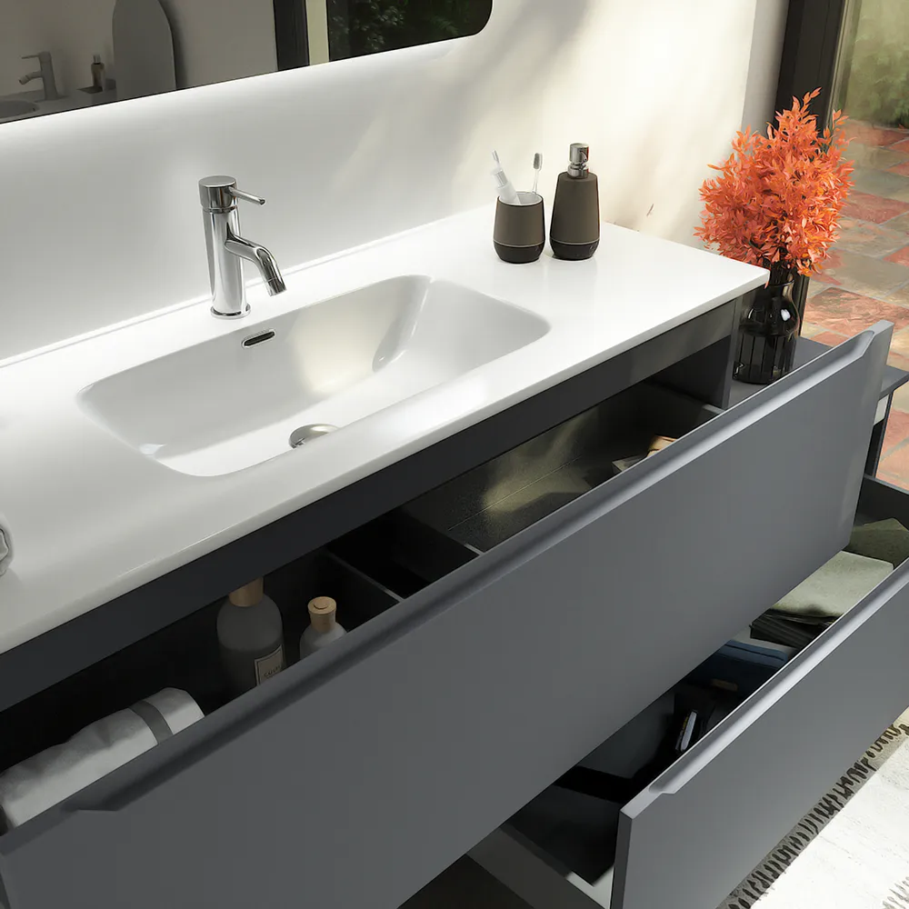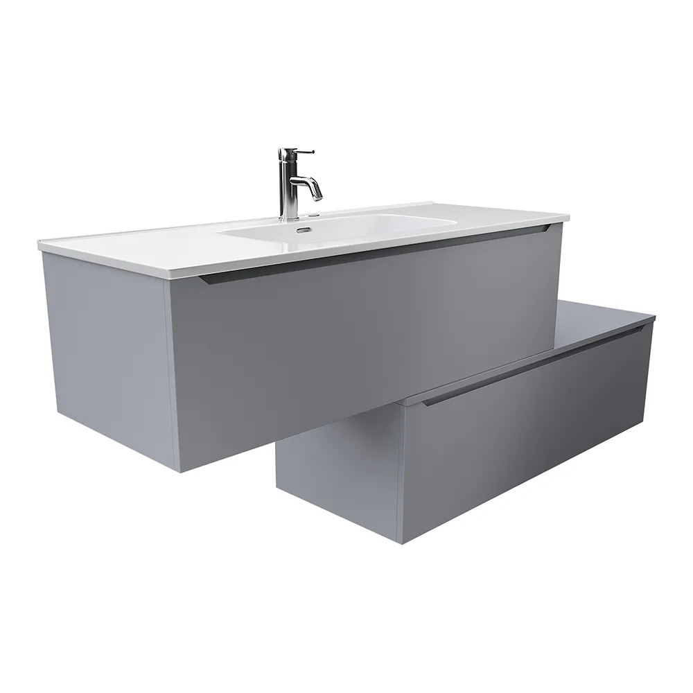 Mobile bagno sospeso modulare 120 cm grigio opaco due cassetti con lavabo | Bako