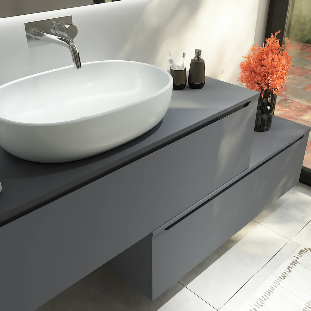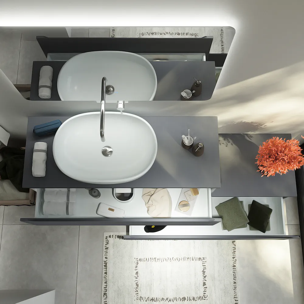 Mobile bagno sospeso modulare 120 cm grigio opaco due cassetti con top | Bako