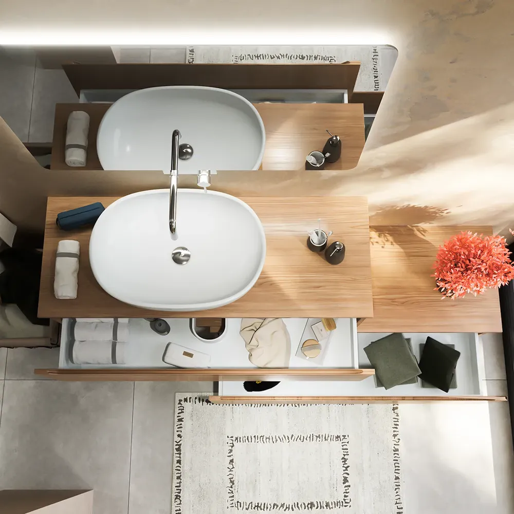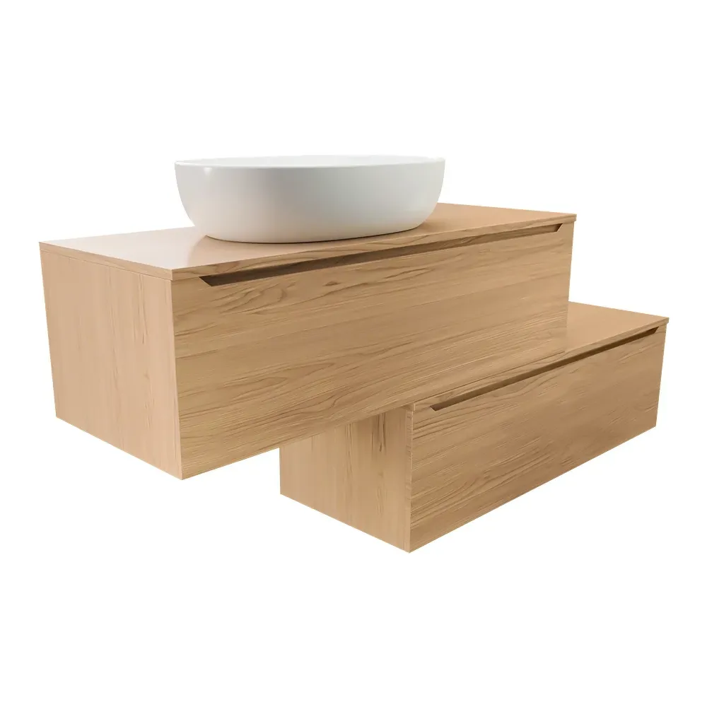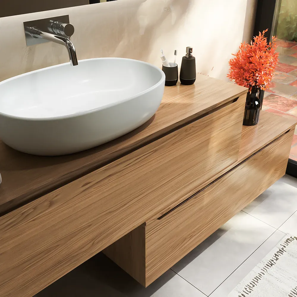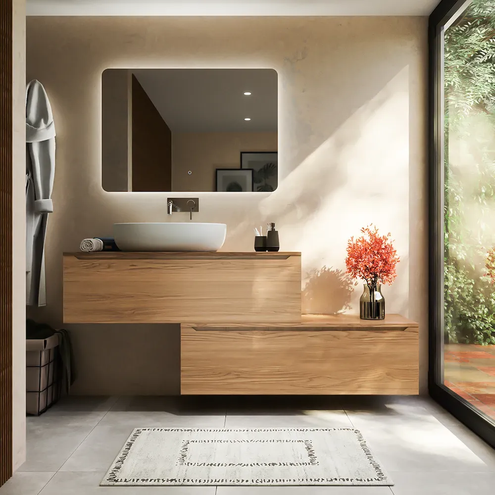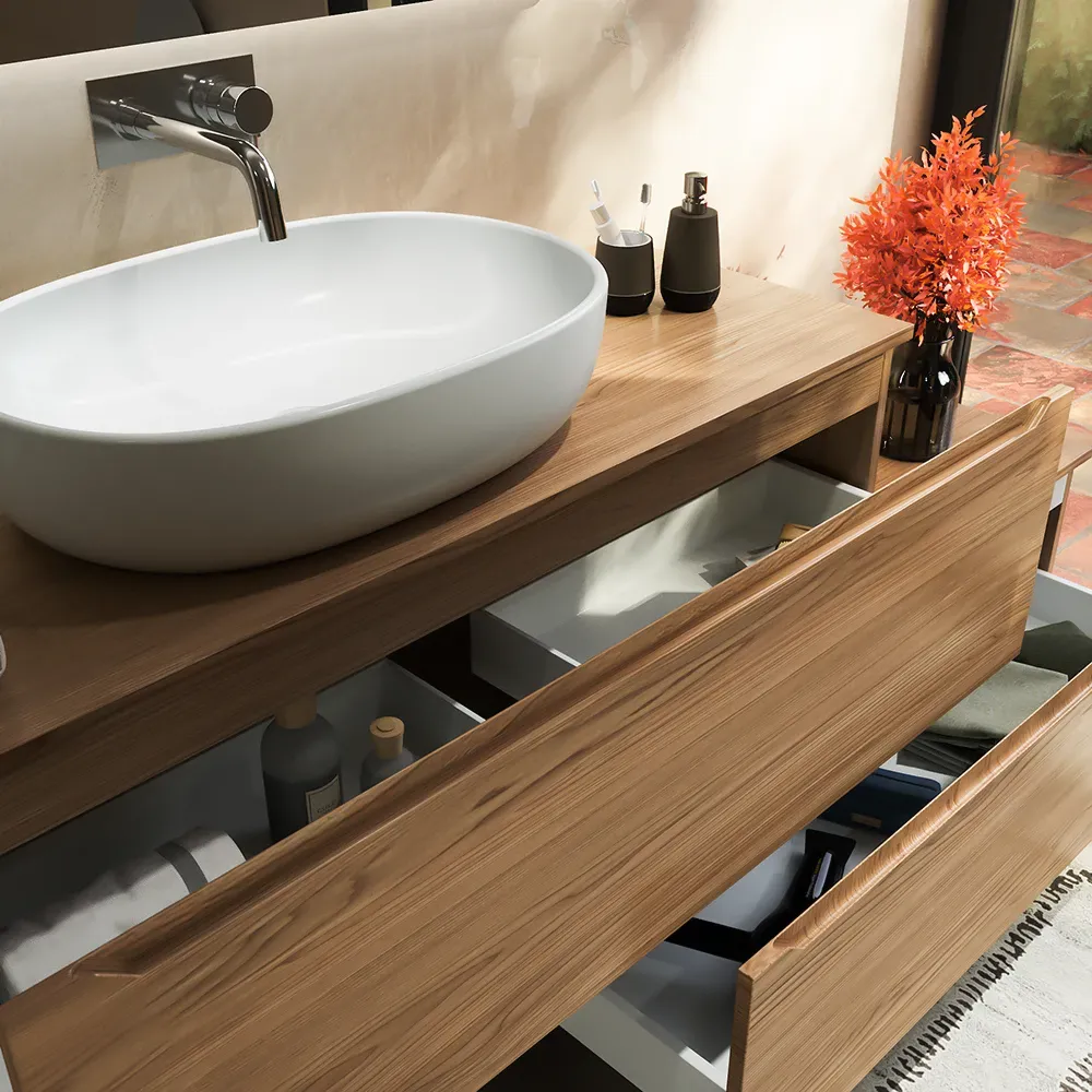Mobile bagno sospeso modulare 120 cm rovere chiaro due cassetti con top | Bako