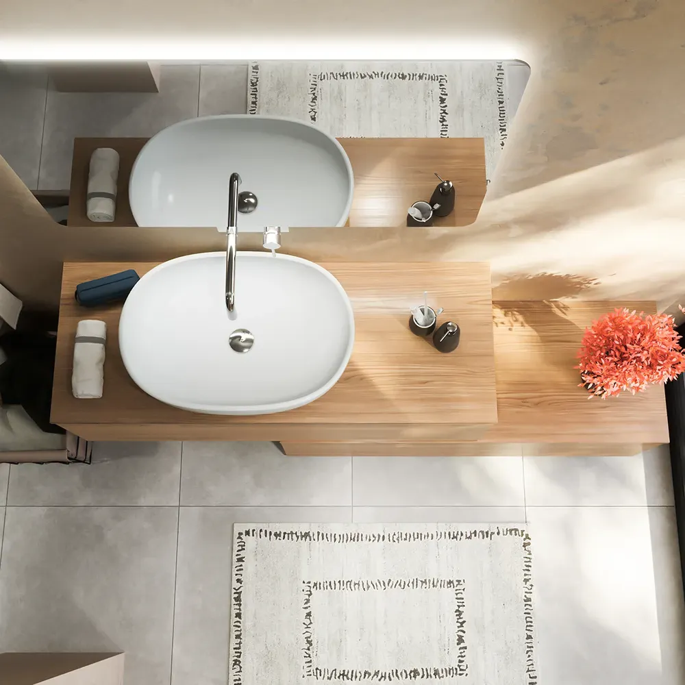La rubinetteria, il lavabo e lo specchio non sono inclusi nella composizione, ma potete trovarli nella nostra categoria dedicata.