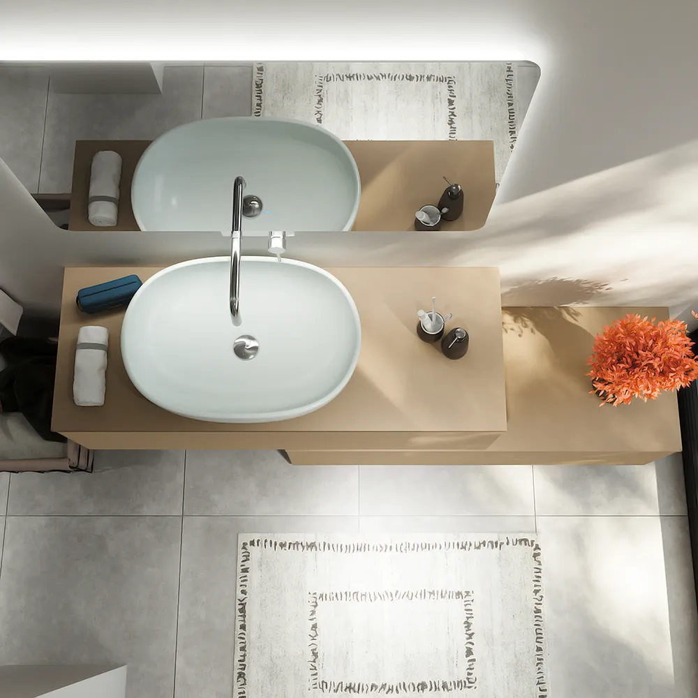 La rubinetteria, il lavabo e lo specchio non sono inclusi nella composizione, ma potete trovarli nella nostra categoria dedicata.