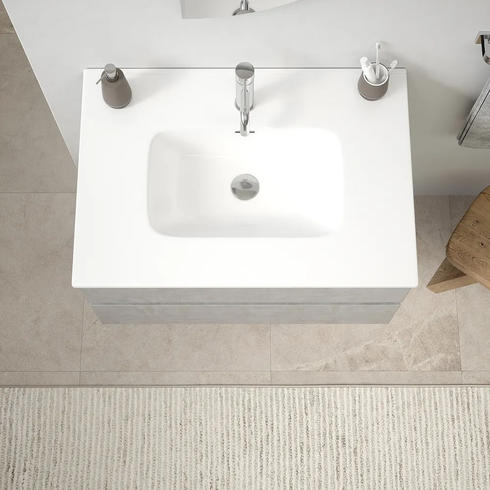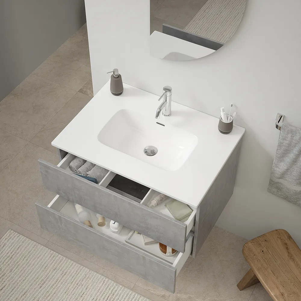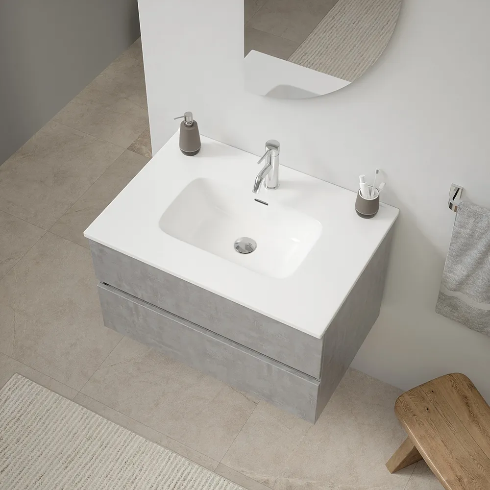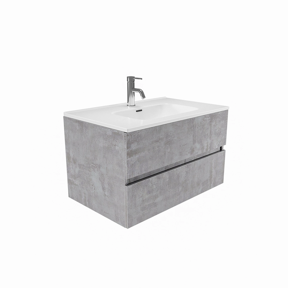 Mobile da bagno sospeso 100 cm effetto cemento chiaro con lavabo| Yili