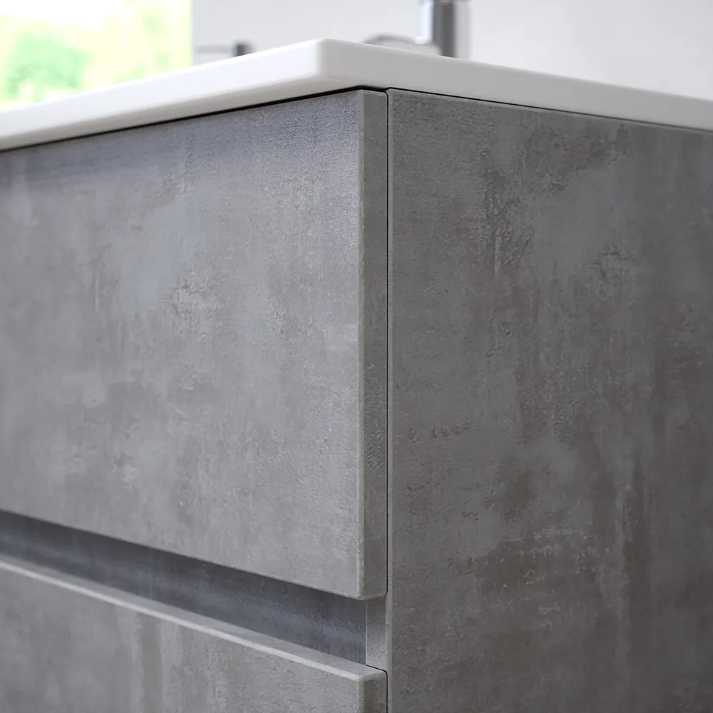 Scopri il nostro elegante mobile da bagno sospeso modello Yili da 100cm, progettato per unire estetica e funzionalità. Con una finitura effetto cemento chiaro di tendenza, questo mobile si adatta perfettamente a qualsiasi stile di arredamento moderno, portando un tocco di raffinatezza e minimalismo al tuo bagno.