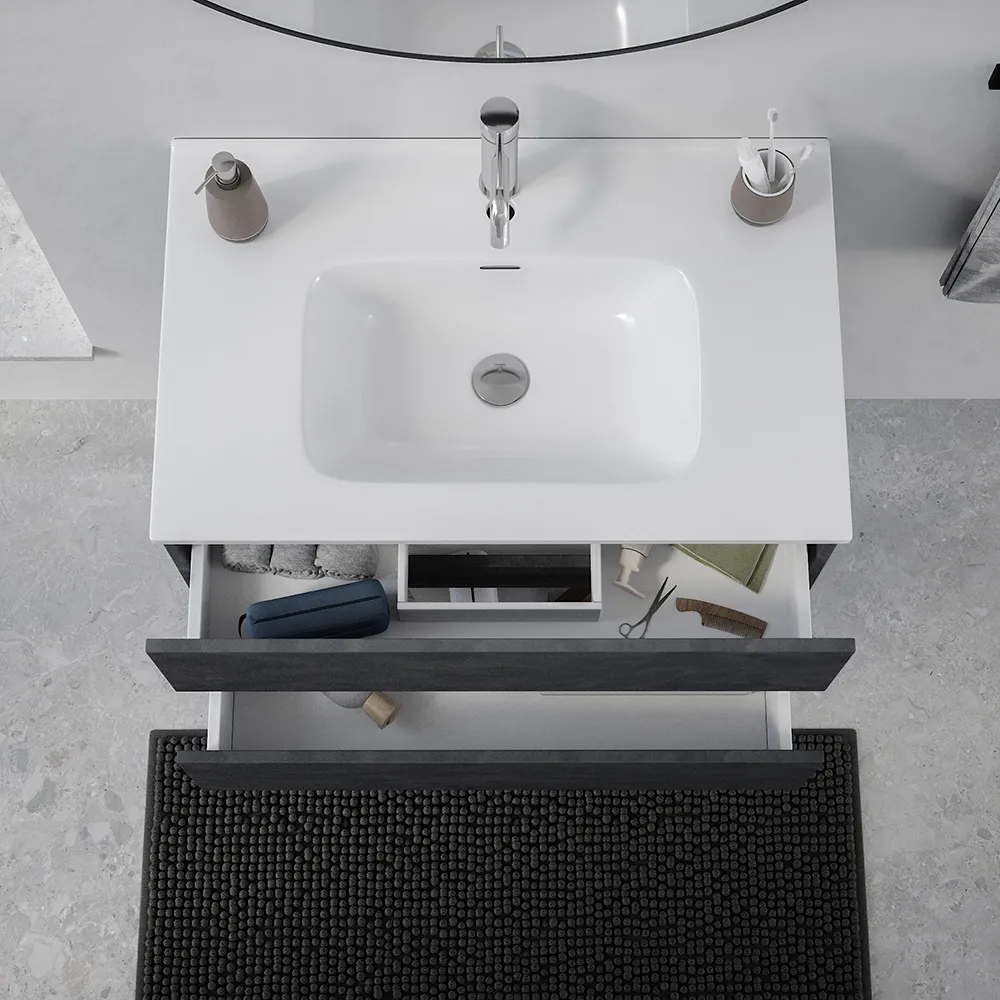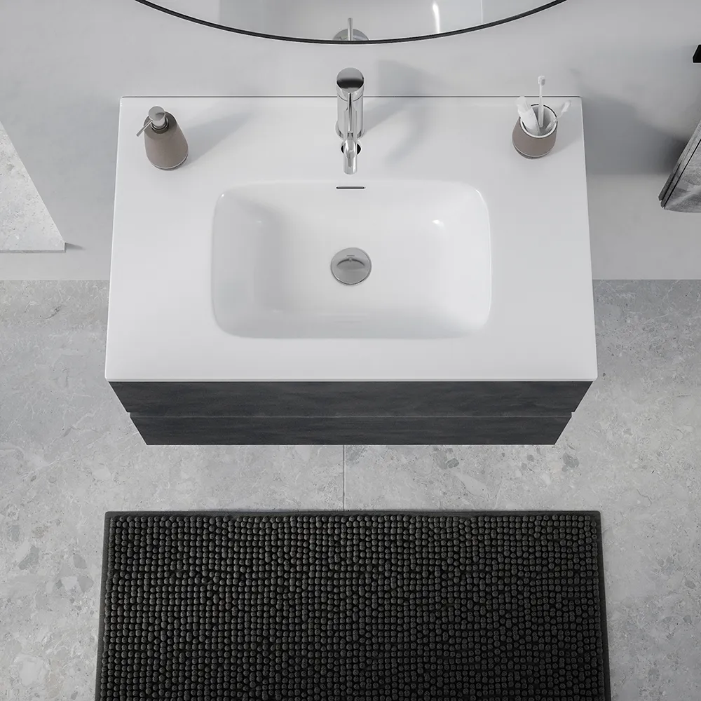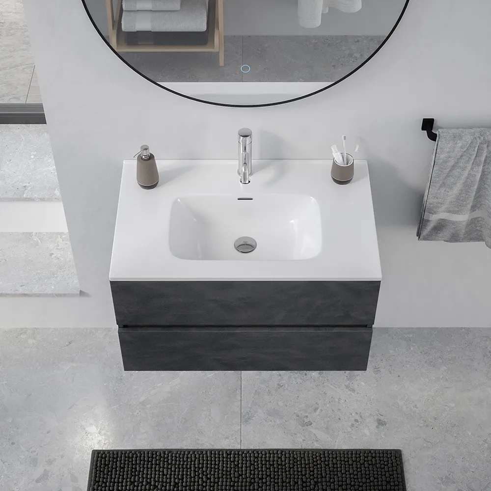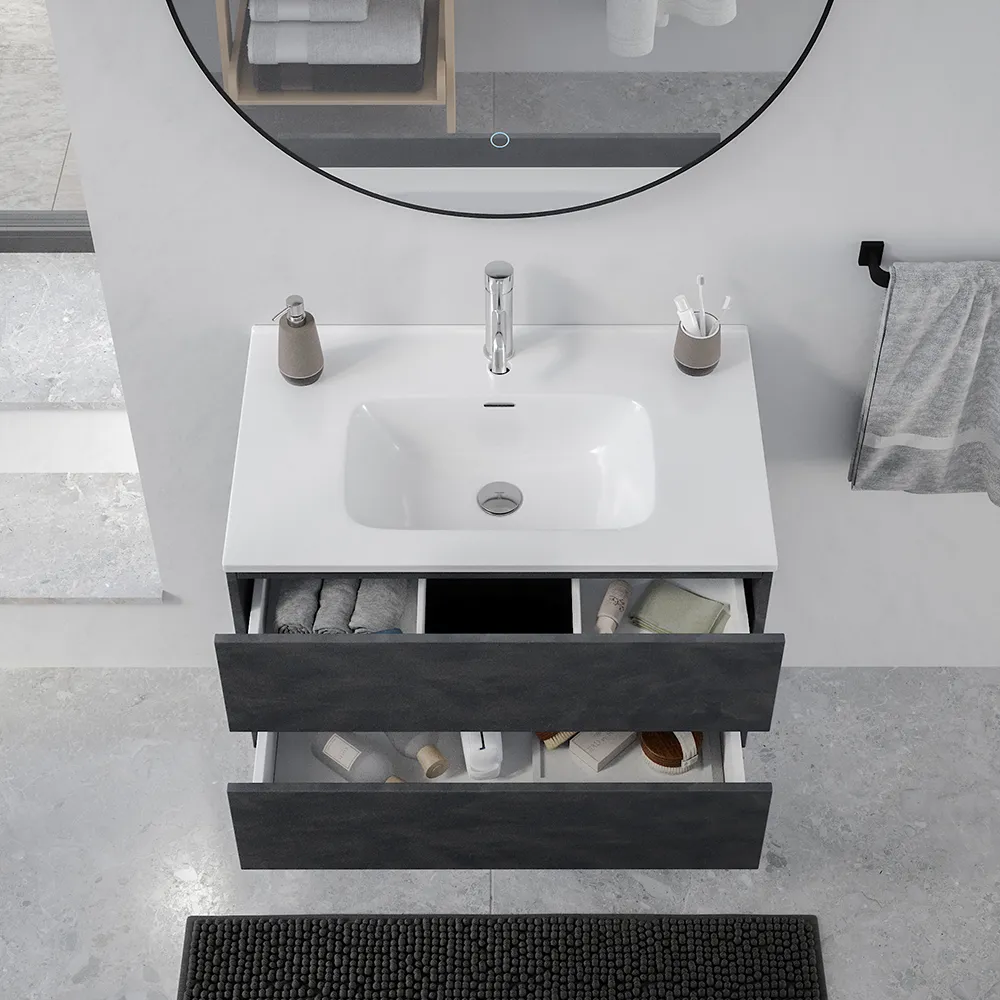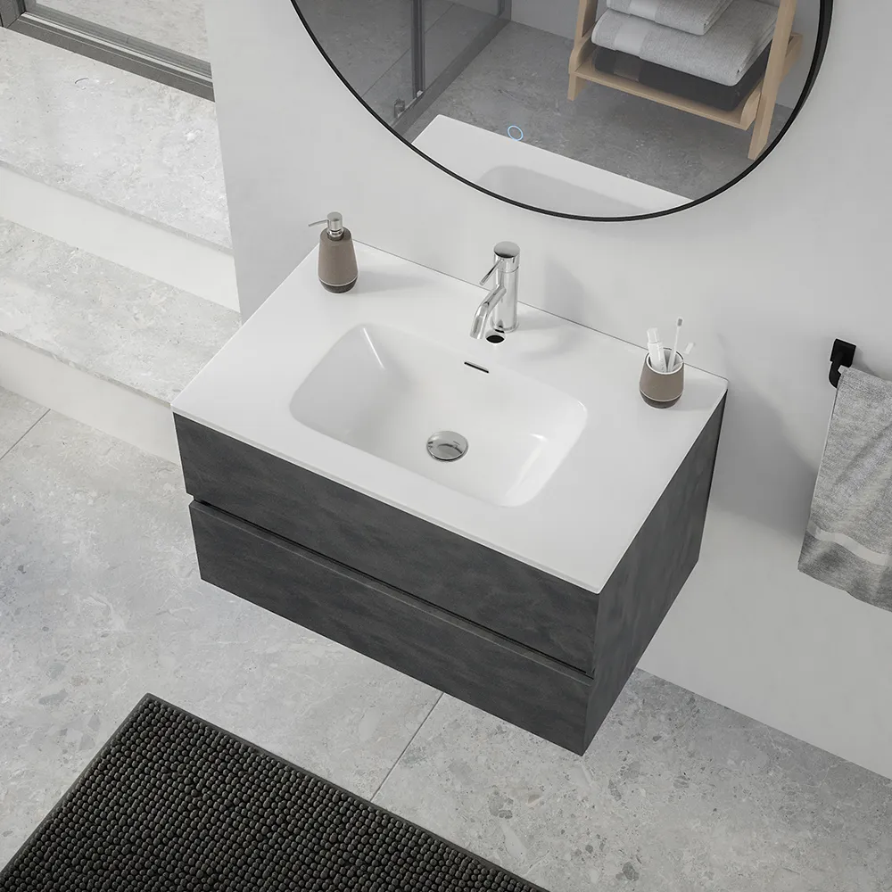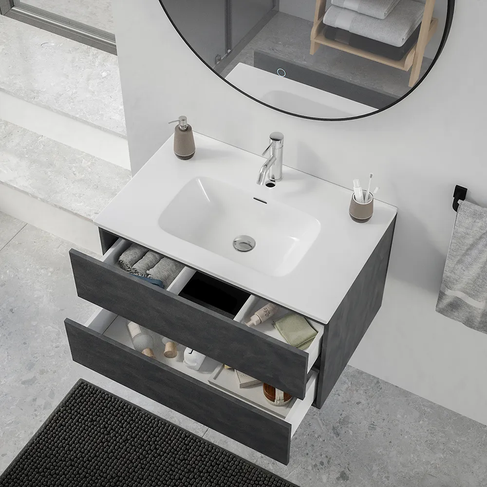 Mobile da bagno sospeso 60 cm effetto cemento scuro con lavabo| Yili