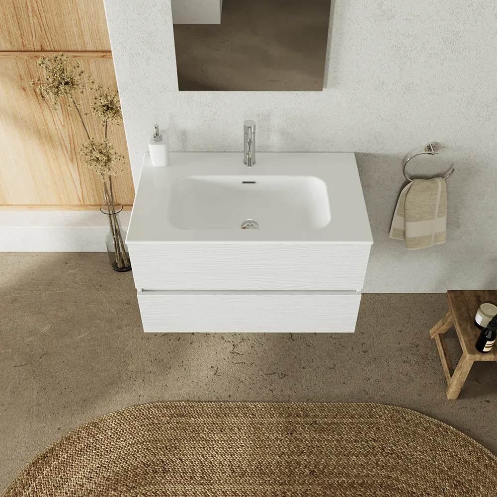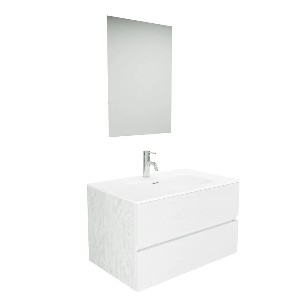 Mobile da bagno sospeso 90 cm bianco effetto legno con lavabo e specchio | Yili