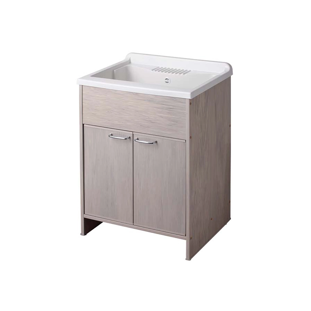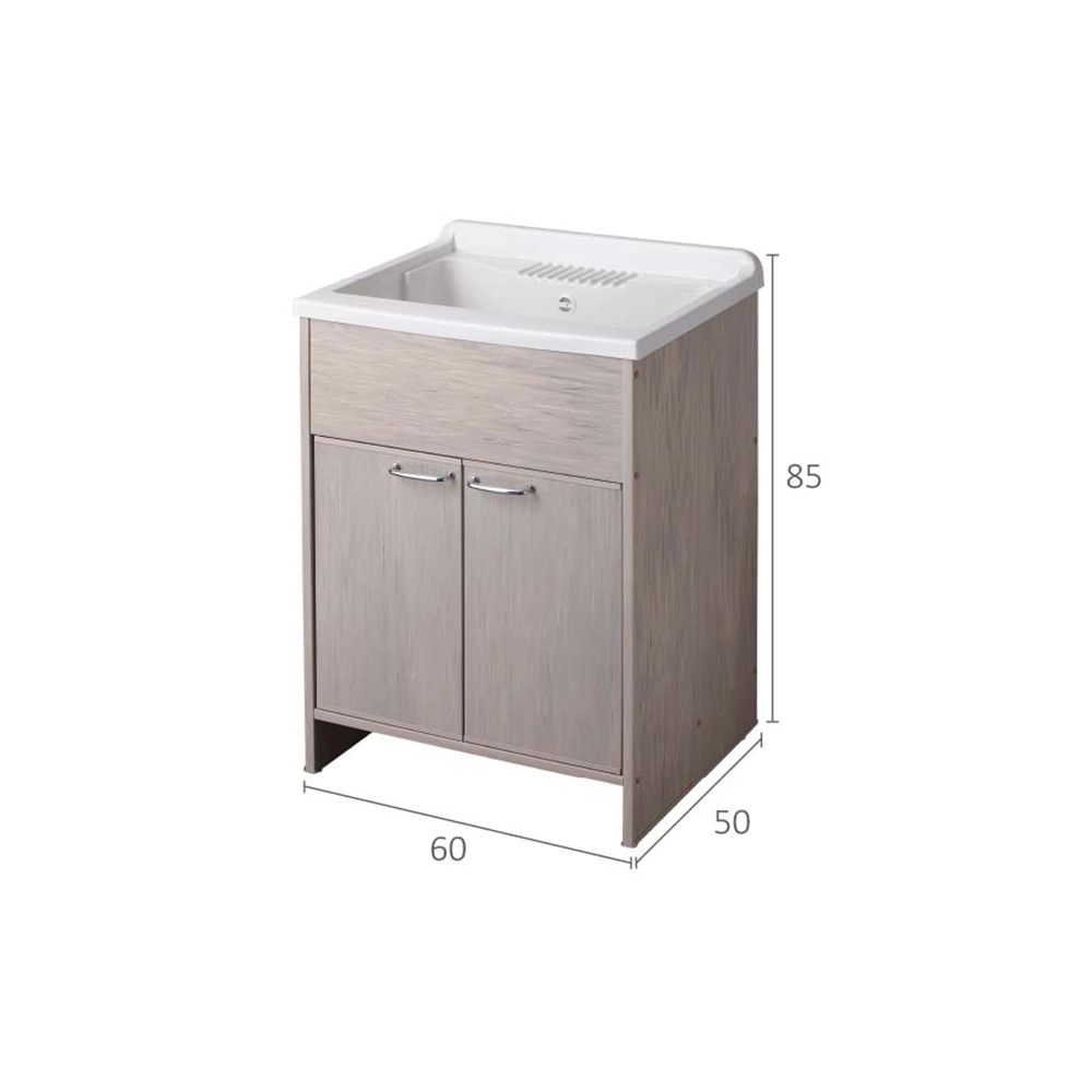 Mobile lavatoio in kit per esterni 60x50 cm in PVC rovere effetto legno - vasca e asse in PP, sifone e troppo pieno | Junior