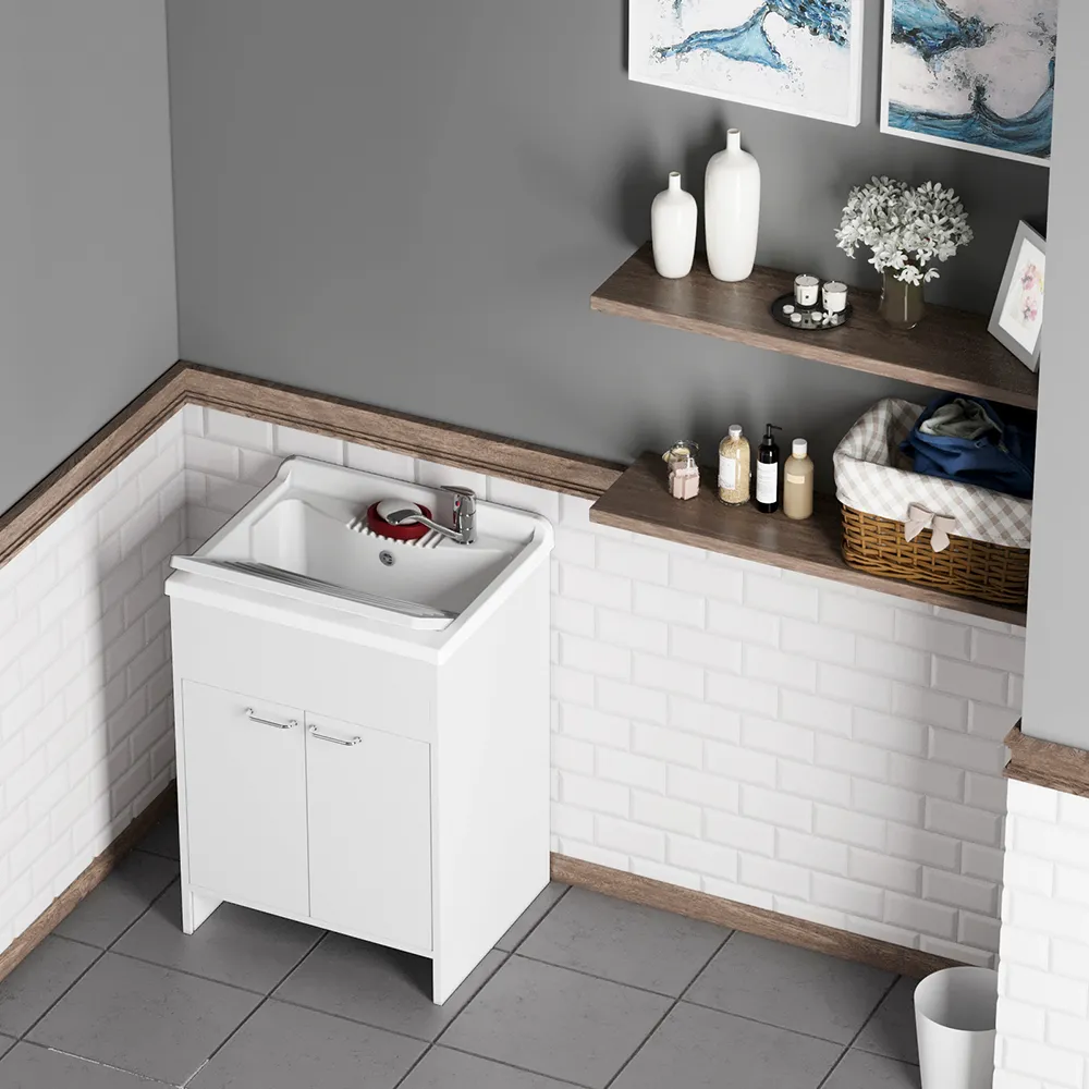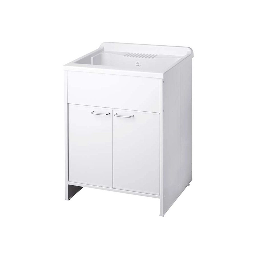Mobile lavatoio in kit per esterni 60x60 cm in PVC bianco - vasca e asse in PP, sifone e troppopieno | Junior