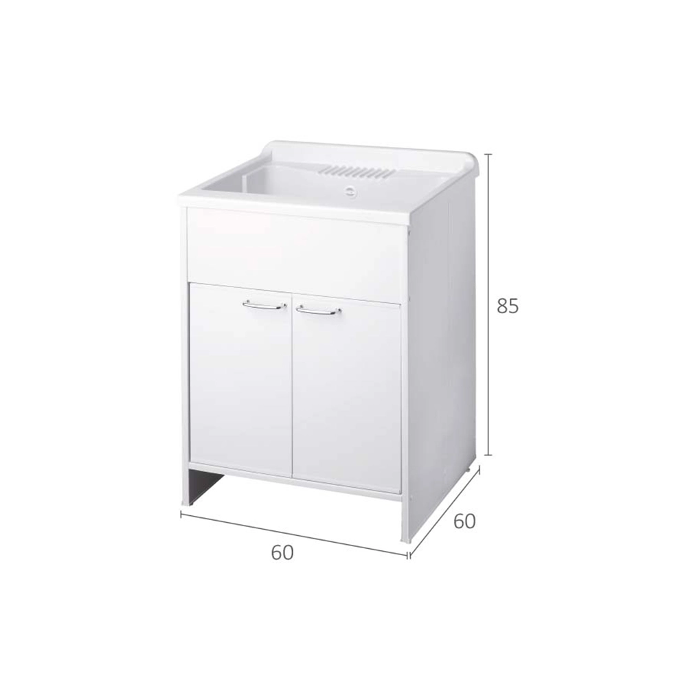 Con le sue dimensioni 60x60cm è dotato di un'ampia vasca in plastica PP con finitura bianco, perfetta per il lavaggio a mano di stoviglie, utensili o per dare una rinfrescata alle tue piante.