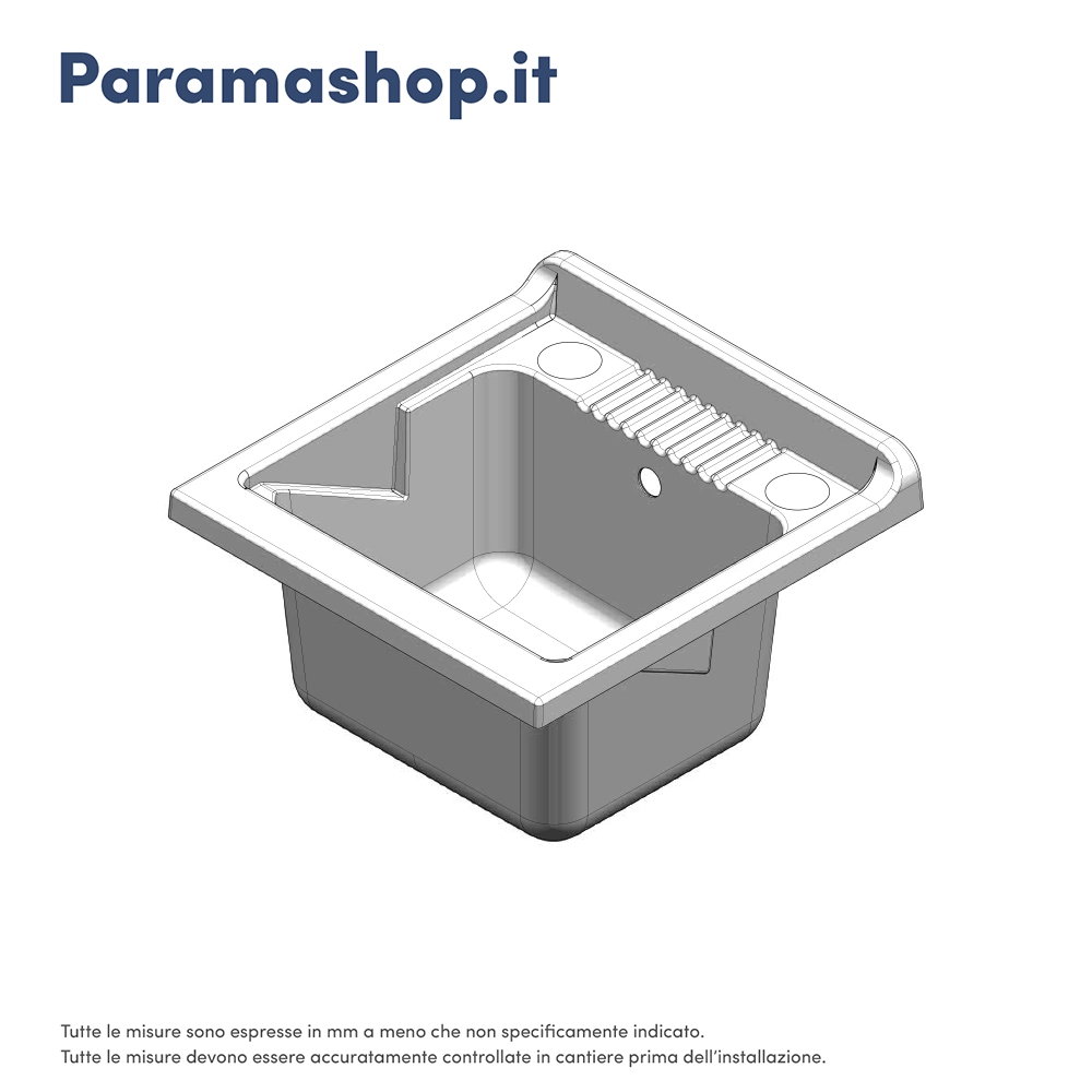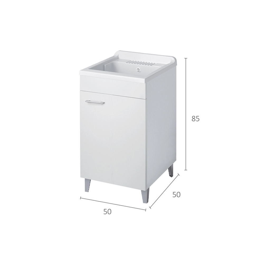 Mobile lavatoio per interni 50x50 cm bianco-vasca e asse in PP, sifone e troppopieno | Pratika