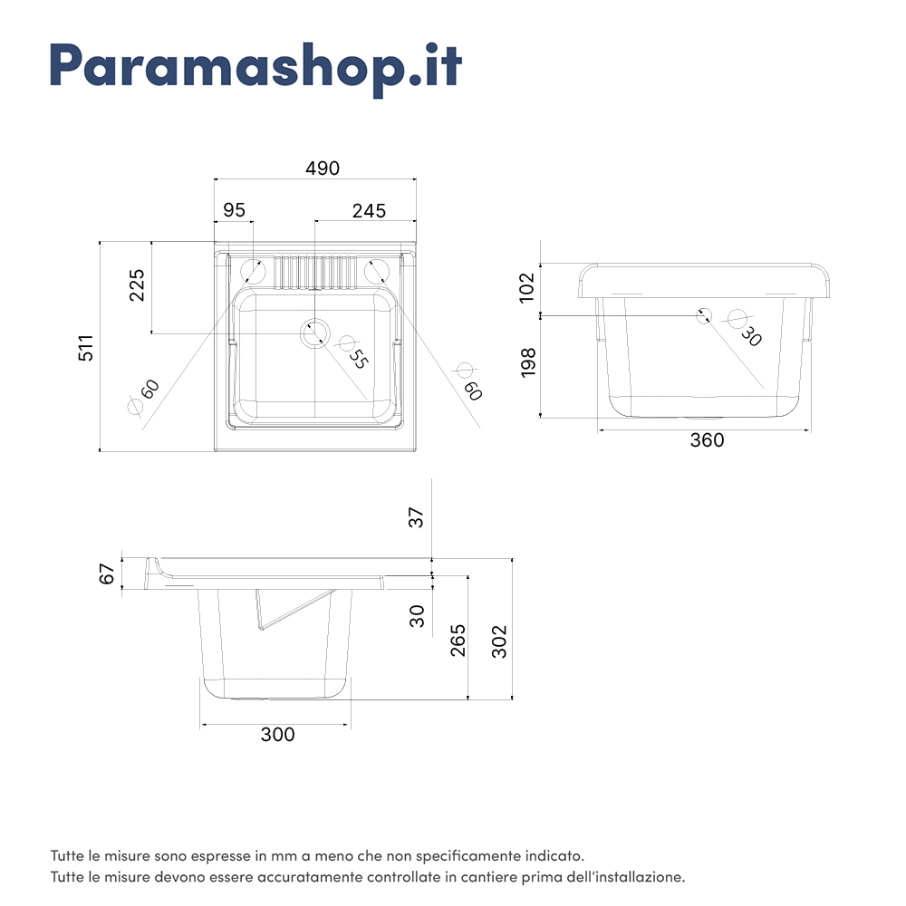 La vasca in plastica PP è capiente e forabile per l'installazione del rubinetto, facilitando le operazioni di lavaggio a mano.