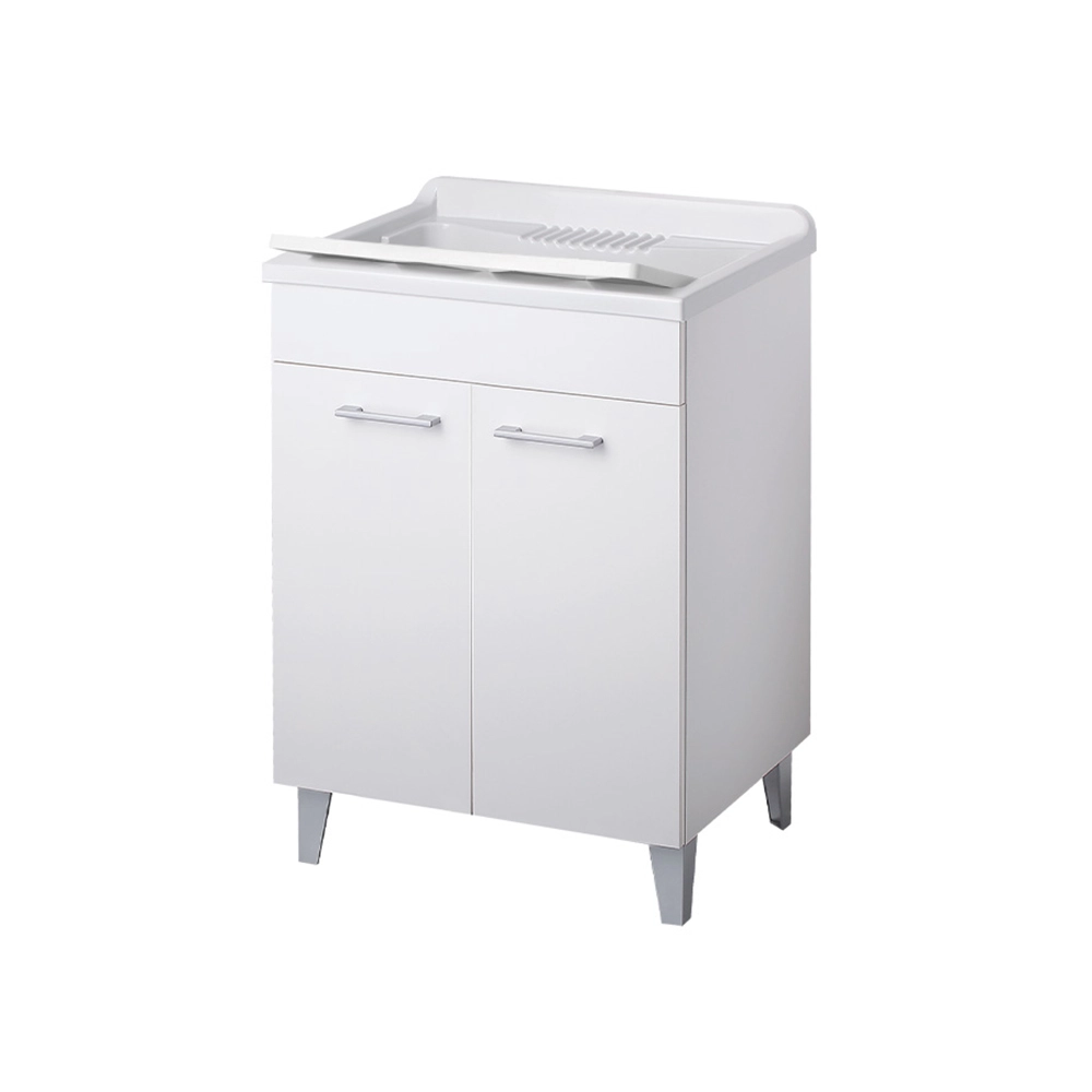 Mobile lavatoio per interni 60x50 cm bianco - vasca e asse in PP, sifone e troppopieno | Pratika