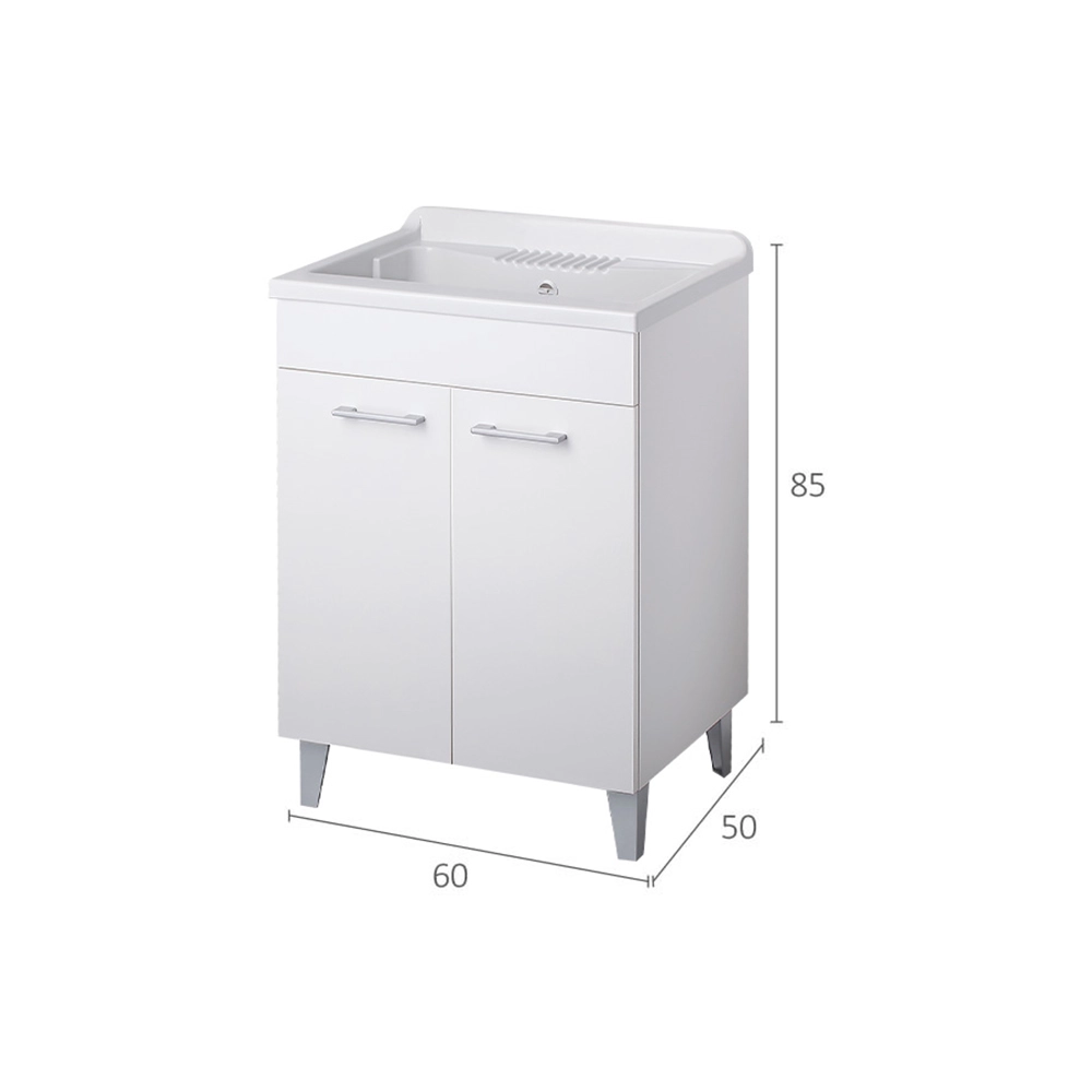 Il mobile lavatoio Pratika 60x50 cm bianco con un'altezza di 85 cm si distingue per il suo design moderno e la sua funzionalità, rendendolo la soluzione ideale per arredare la tua lavanderia con praticità. Le sue dimensioni compatte lo rendono perfetto anche per gli ambienti più piccoli.