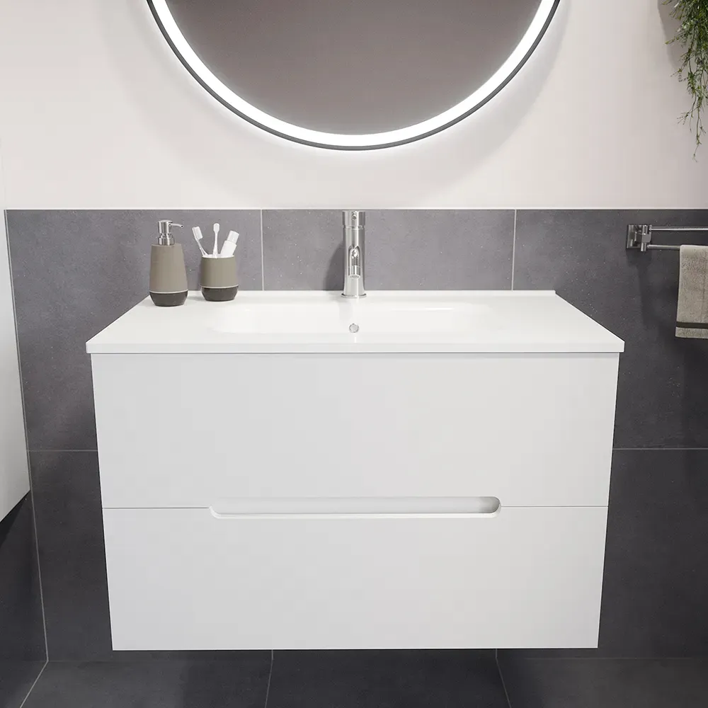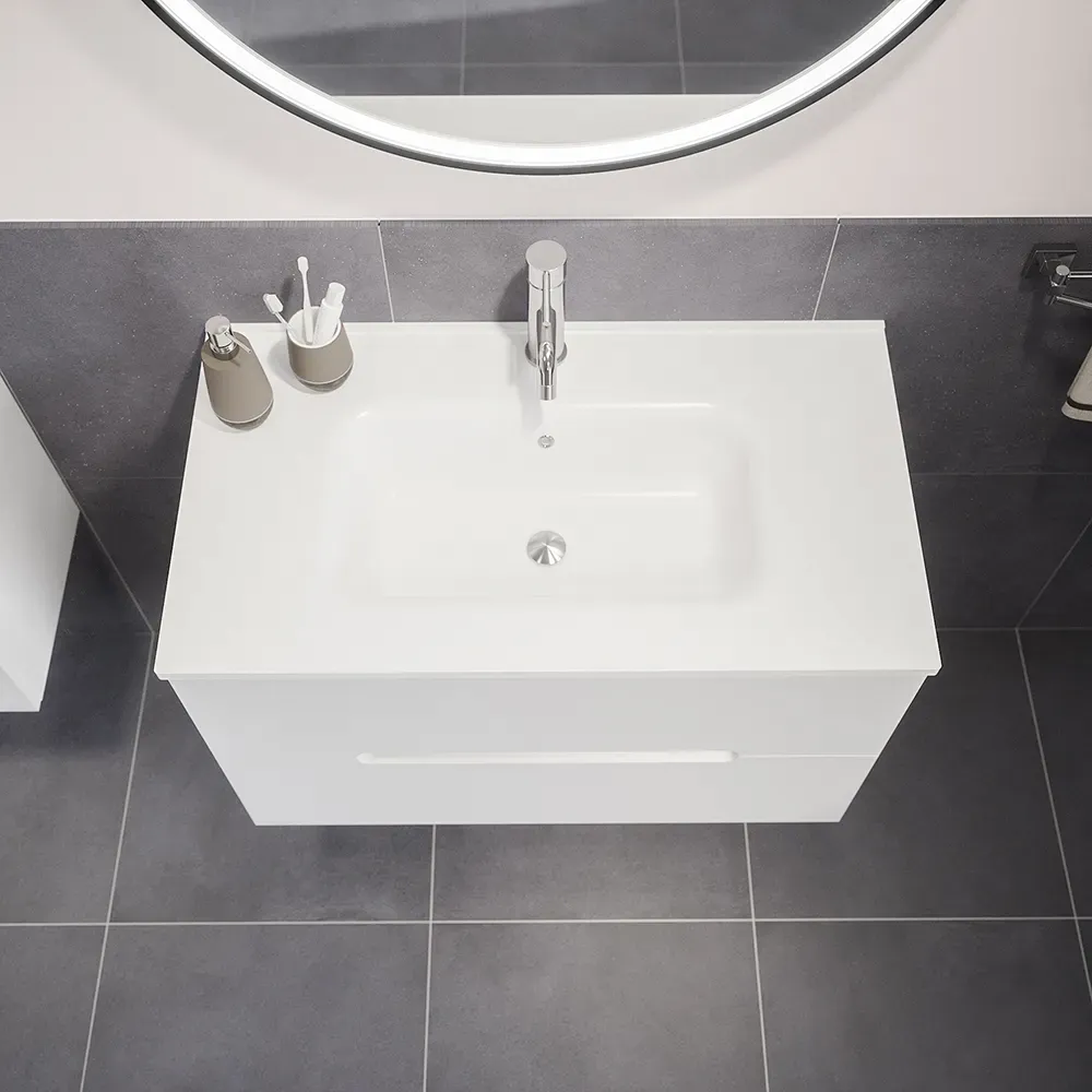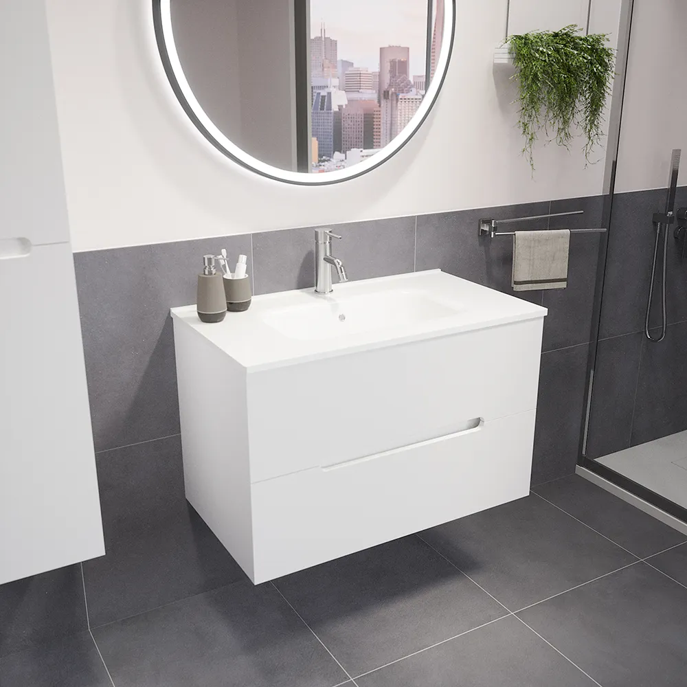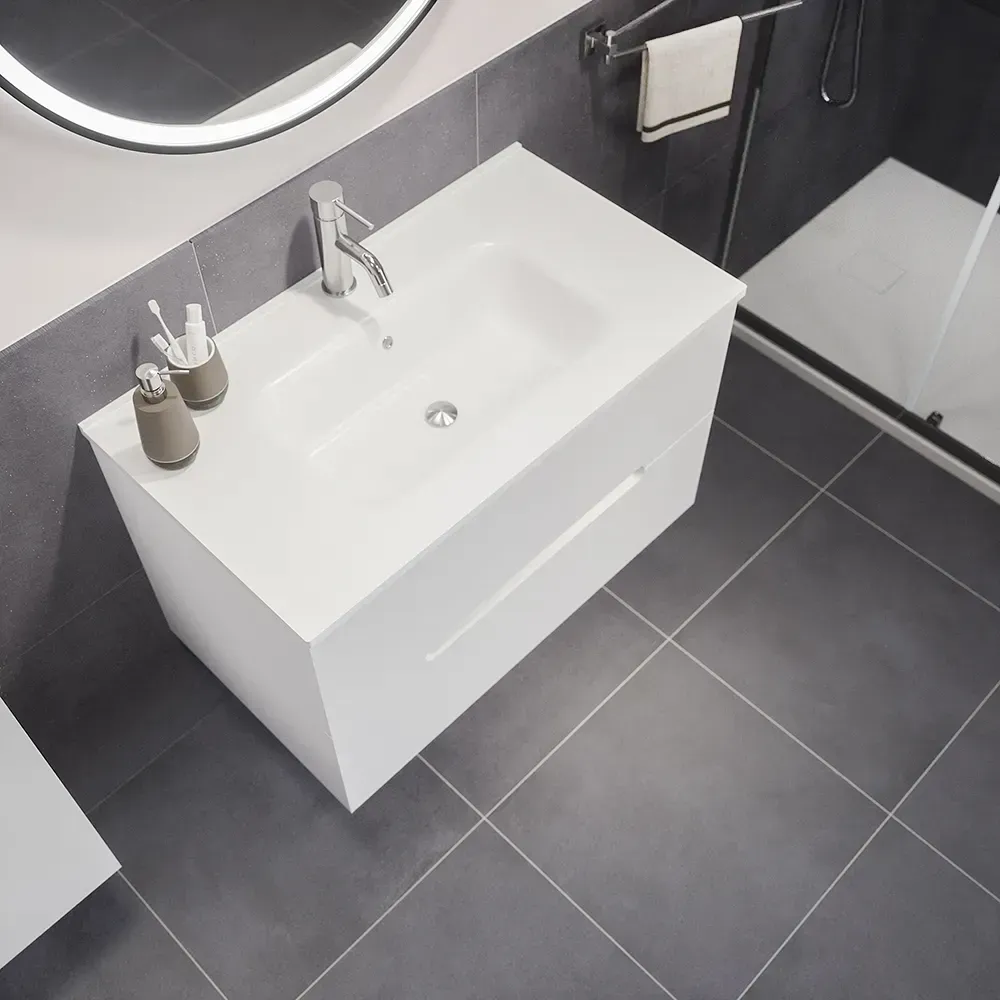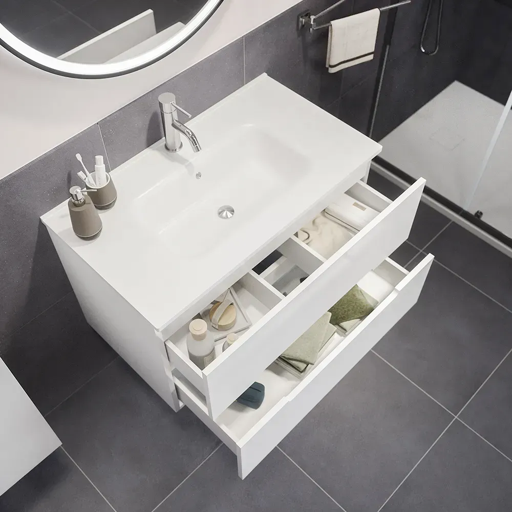 Realizzato interamente in MDF con una finitura bianco lucido e bordatura ABS, il mobile serie Valdivia vanta una resistenza all'acqua e all'umidità, garantendoti una bellezza duratura nel tempo. Le sue linee essenziali e moderne si adattano con eleganza a qualsiasi stile di arredamento, dal classico al contemporaneo, donando un tocco di raffinatezza al tuo bagno. L'installazione sospesa contribuisce a creare un design leggero e ampiezza ampiezza al tuo bagno.