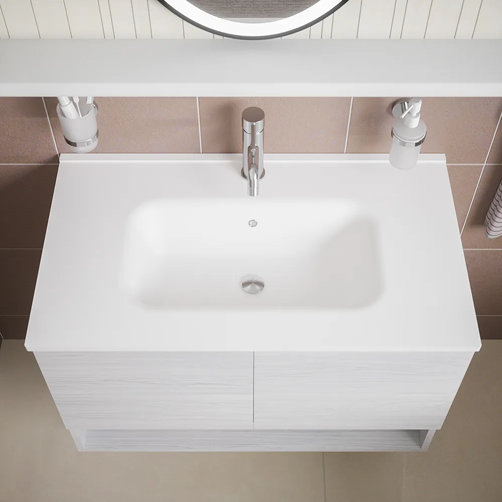 Realizzato in MDF con finitura bianco effetto legno, questo mobile vanta una resistenza impeccabile all'acqua e all'umidità, garantendoti una bellezza duratura nel tempo. La sua superficie liscia è inoltre facile da pulire e igienica.