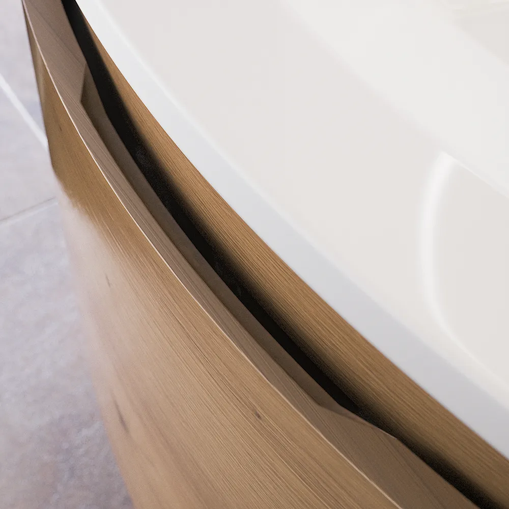 Realizzato interamente in MDF con una finitura rovere oro, il mobile della serie Lula vanta una resistenza all'acqua e all'umidità, garantendoti una bellezza duratura nel tempo. Le sue linee curve si adattano con eleganza a qualsiasi stile di arredamento, donando un tocco di estrema eleganza al tuo bagno. L'installazione sospesa contribuisce a creare un design leggero e facilita la pulizia del pavimento.