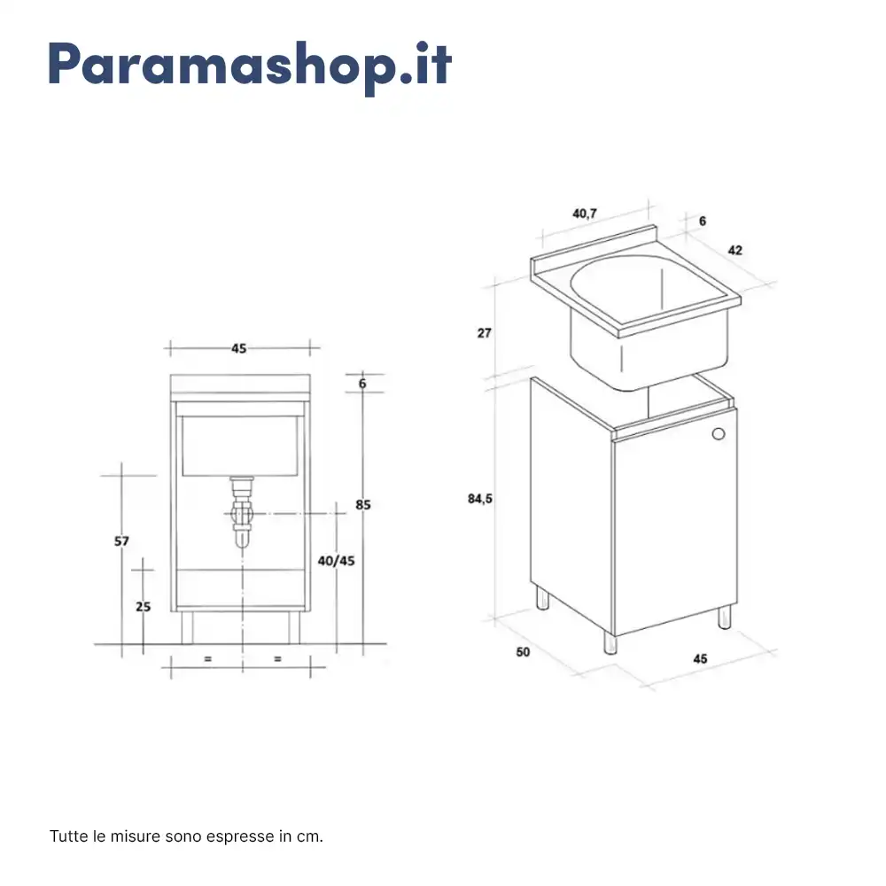 L'apertura a battente cerniera destra assicura una disposizione intuitiva degli elementi. L'asse lavapanni in termoplastico è incluso nella composizione, aggiungendo un ulteriore livello di funzionalità. I piedini del mobile, alti 10 cm, sono regolabili in altezza, garantendo stabilità su qualsiasi superficie. La vasca del lavatoio è realizzata in materiale termoplastico, offrendo una capacità notevole e facilità di pulizia, e presenta una predisposizione al foro del miscelatore.