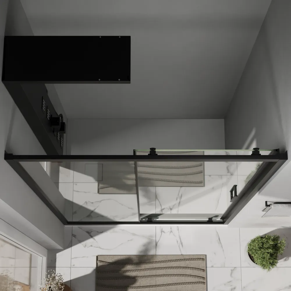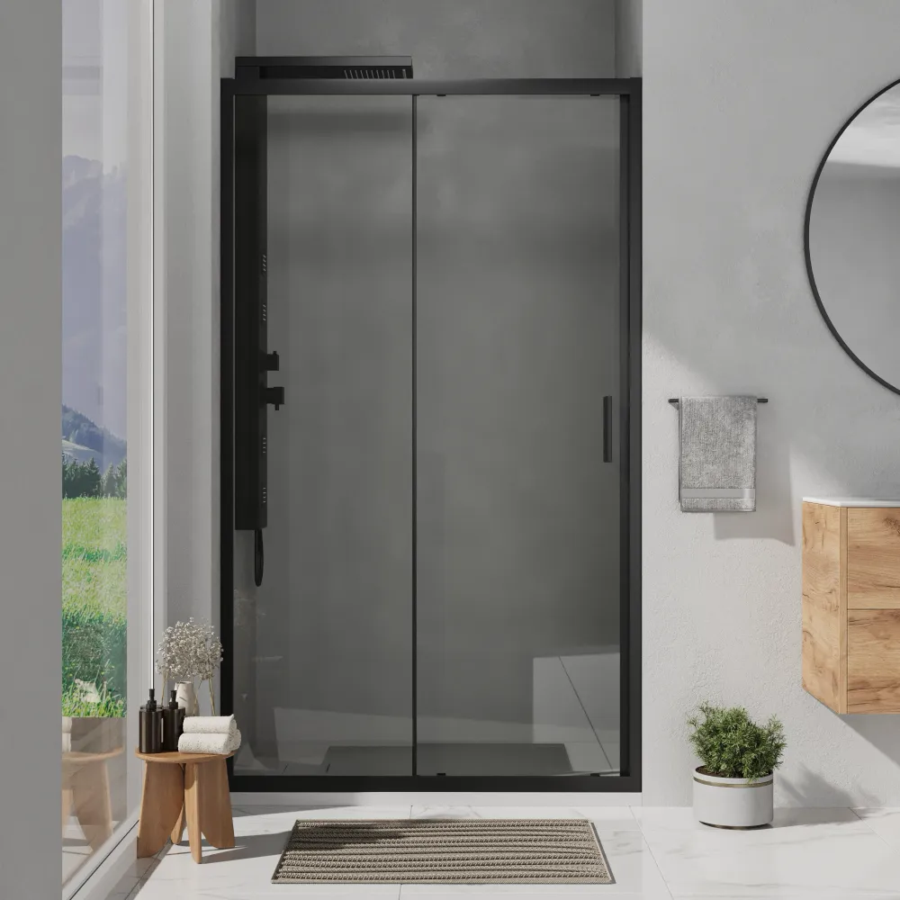Nicchia doccia 150 cm reversibile apertura scorrevole profili nero opaco vetro 6 mm trasparente h 198 | Tahiti