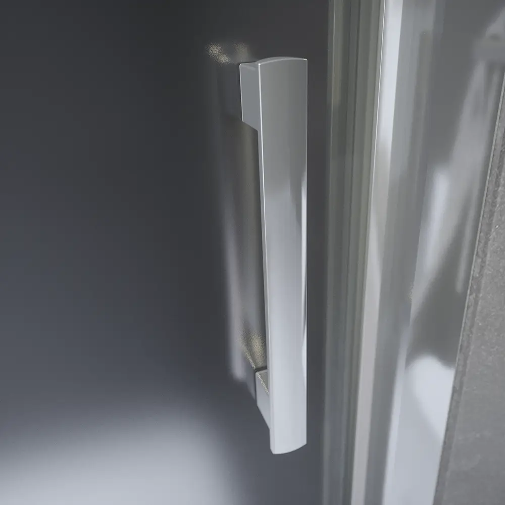 L'anta scorrevole è corredata di 8 carrelli con cuscinetti in metallo testati per 20.000 aperture e chiusura magnetica. Il meccanismo di quick-release (sgancio rapido) consente una pulizia semplice ed immediata senza dover utilizzare alcun utensile.