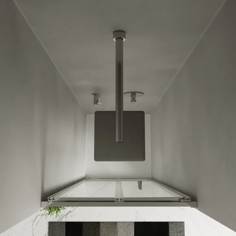 Grazie al meccanismo a libro, la porta si ripiega su sé stessa, permettendo un ingresso comodo anche in bagni piccoli o stretti. Massimizza lo spazio senza sacrificare il comfort.